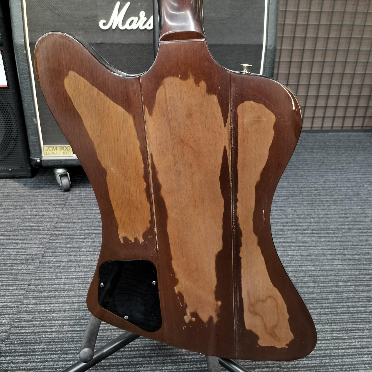 ネック、ボディの裏面塗装薄れており、年季を感じる1本です。 |