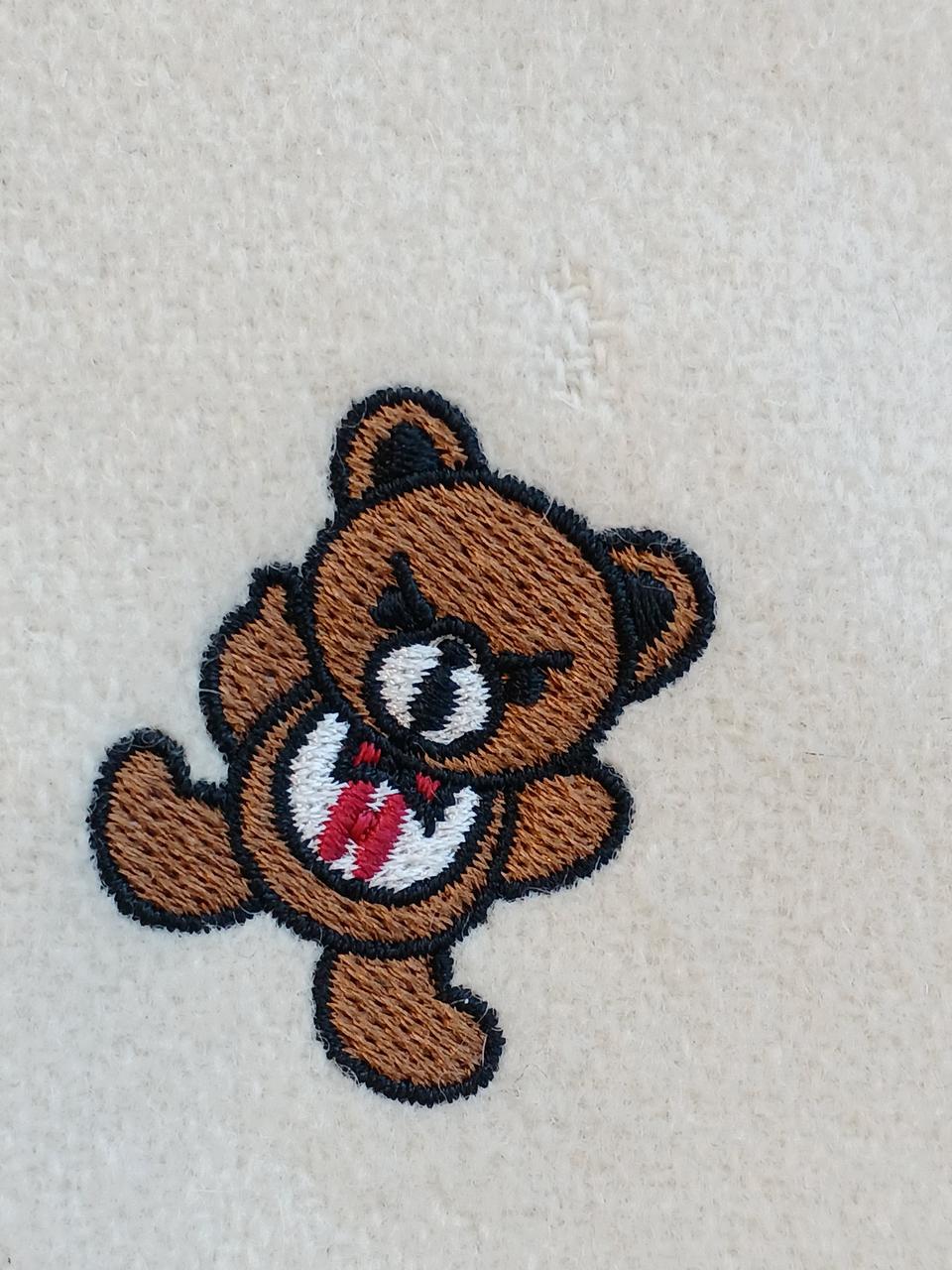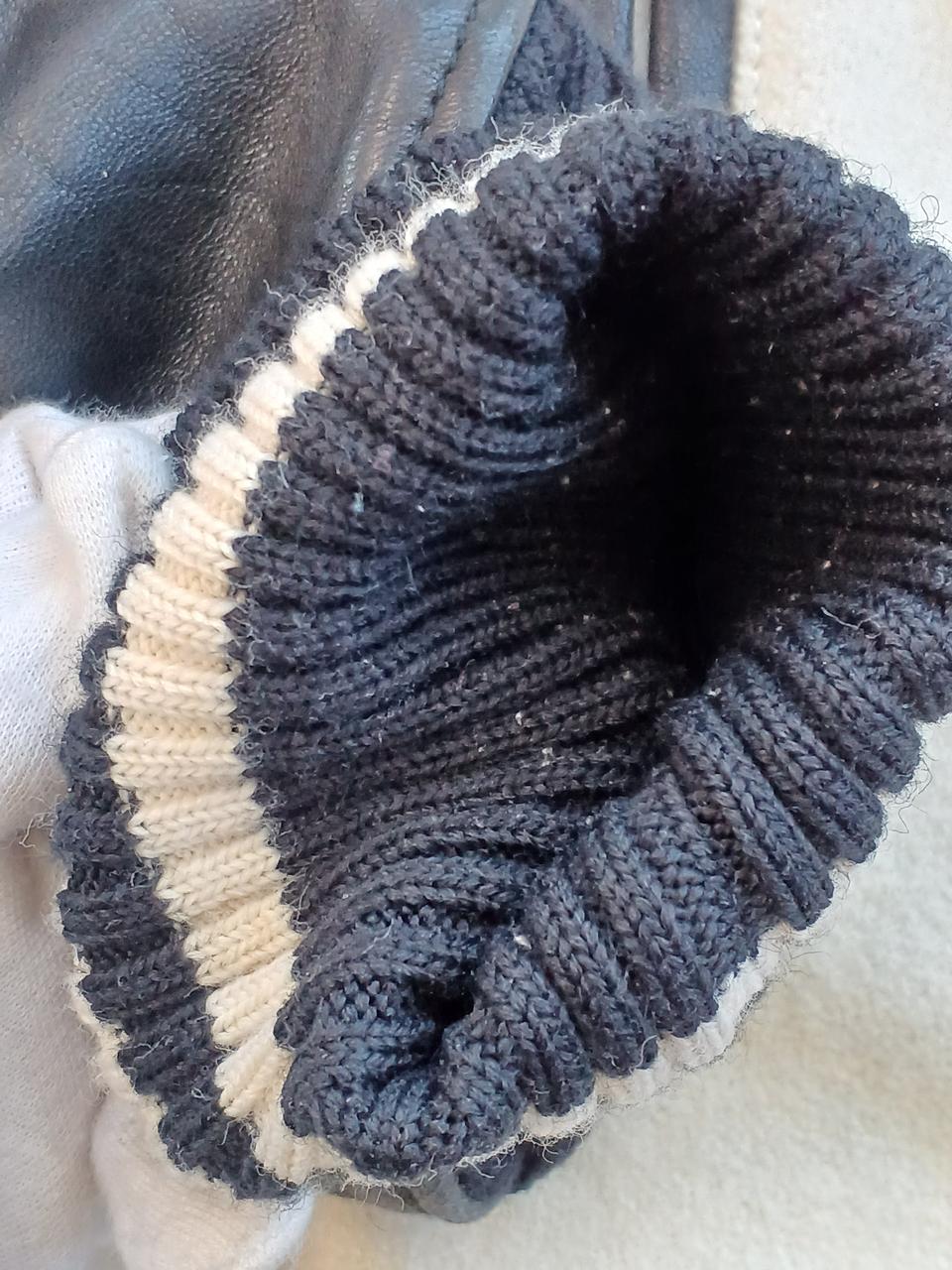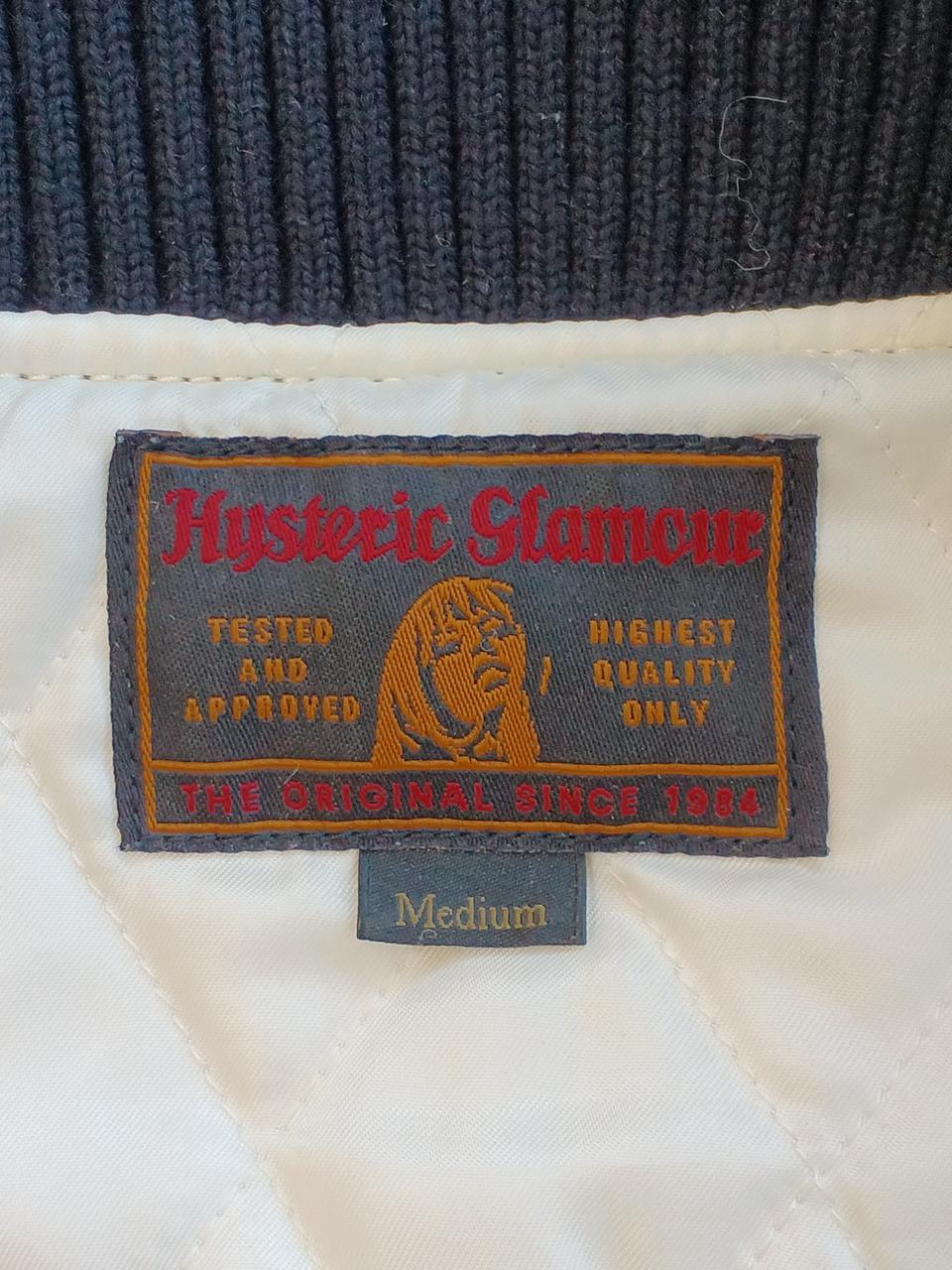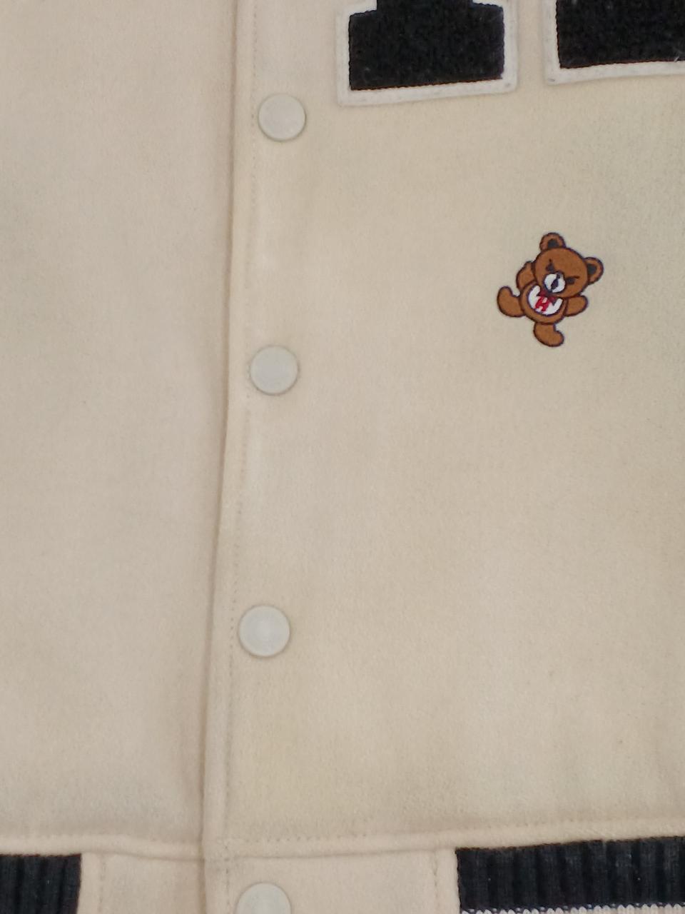 左前身頃の下部全体に変色有。ポケット周囲と、両脇の下に革の色移りあり。左ポケットの革部にほつれあり。右前身頃に虫食い一ヶ所あり。 |
