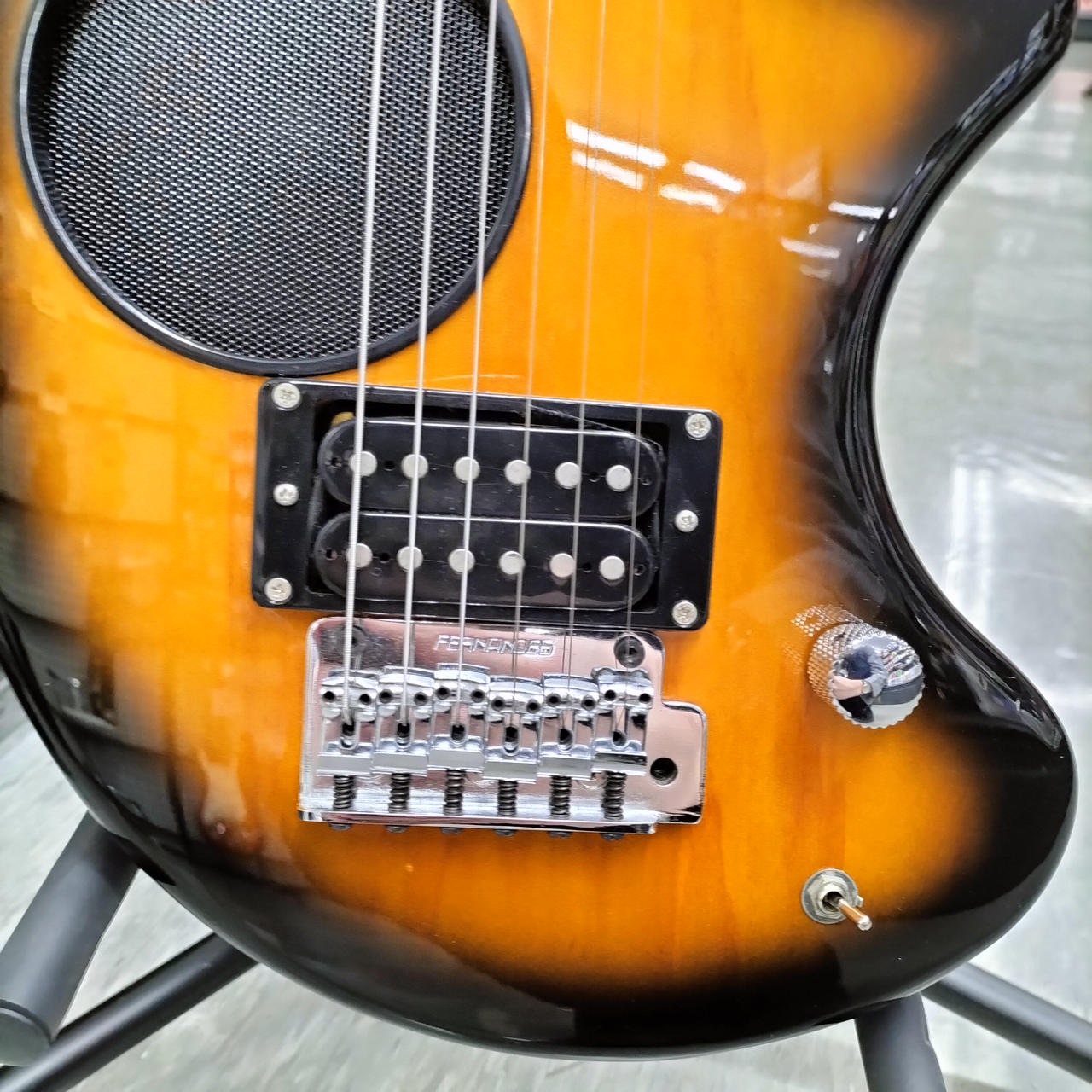 トレモロユニット搭載で、アーム奏法が可能。スピーカー、クリーン/ディストーションの切り替え機能。 |