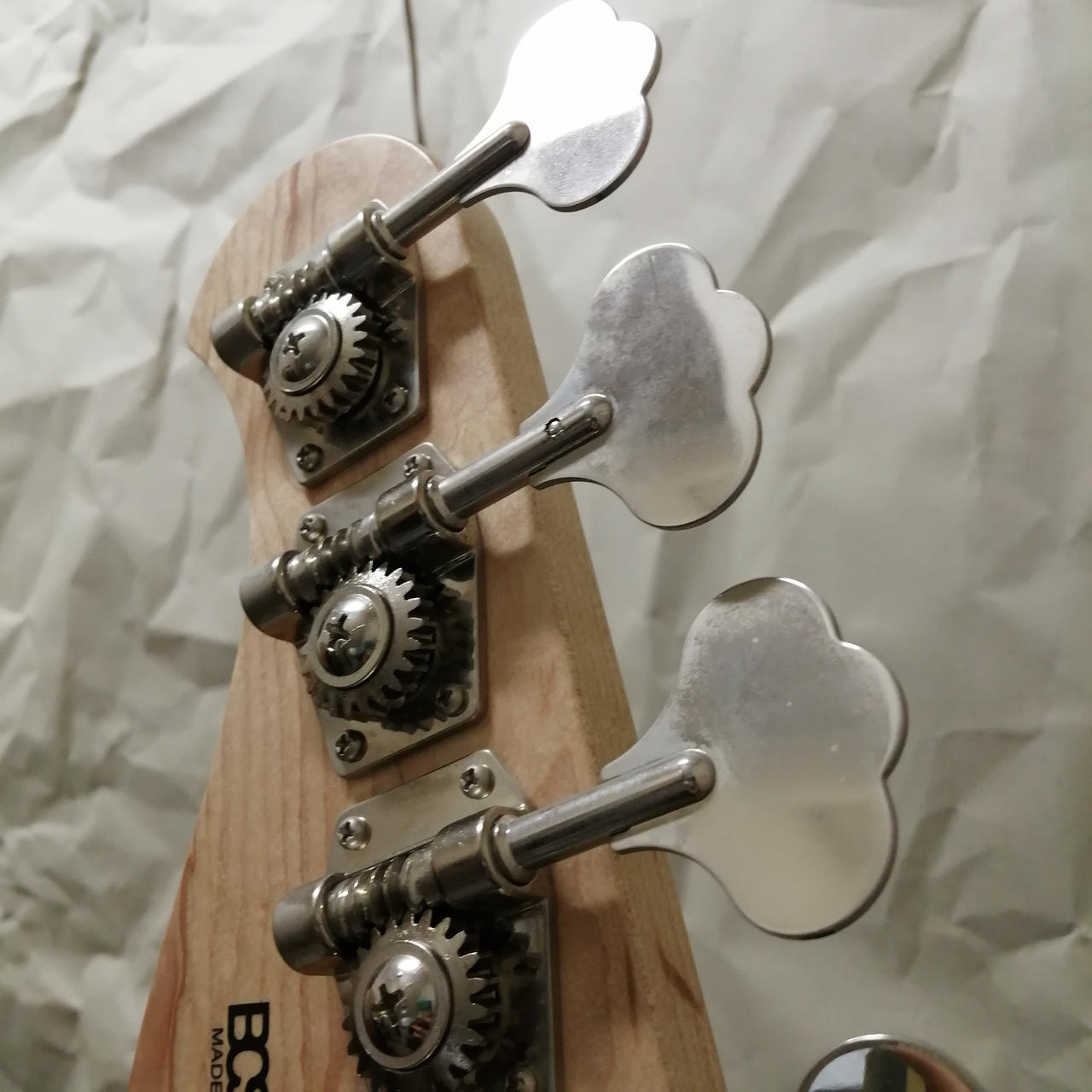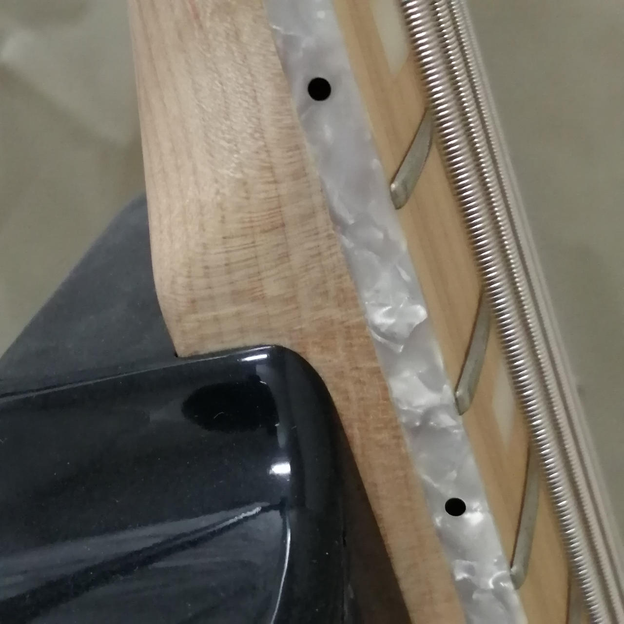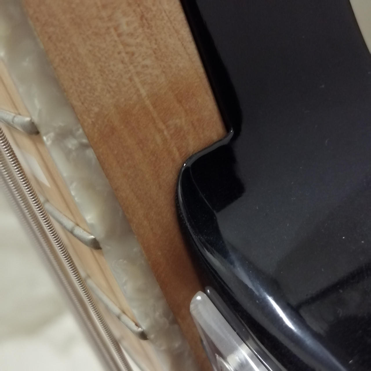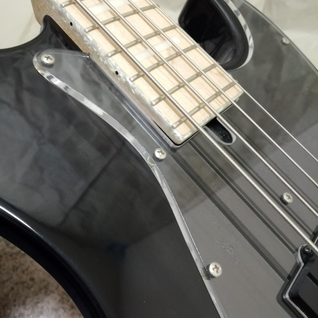 ボディのアッシュ材にバーナー処理を施しており、杢目の映える外観にバインディングは高級感があります。 |