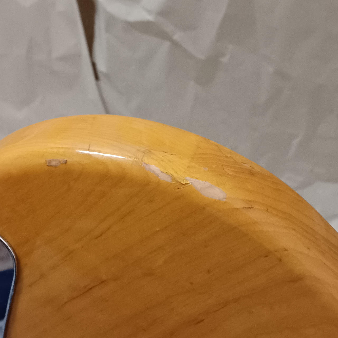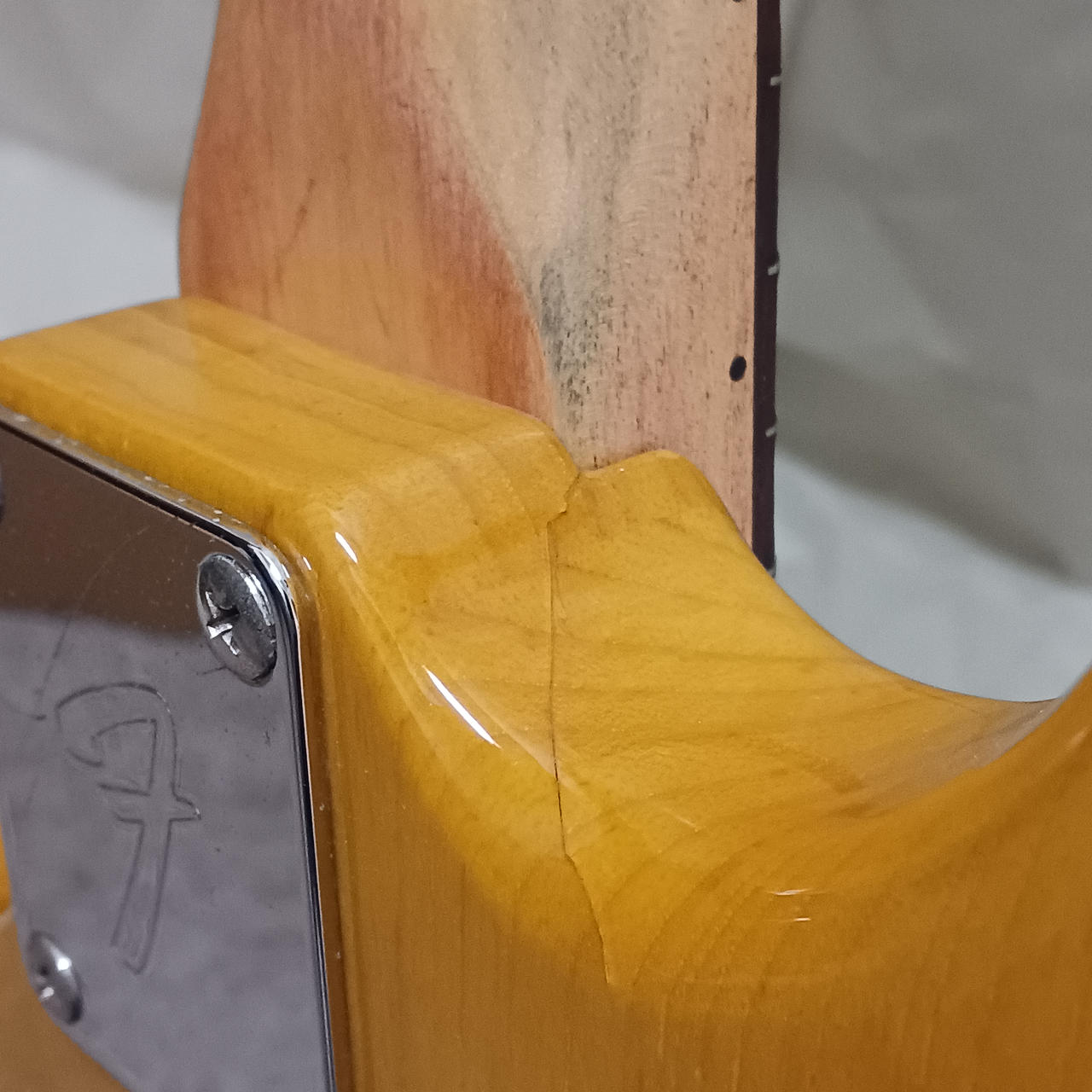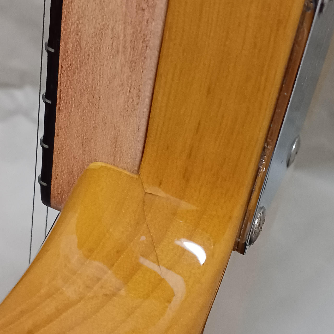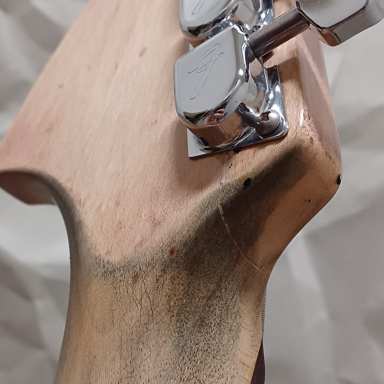 6弦ペグ付近に割れ補修跡あり。 |