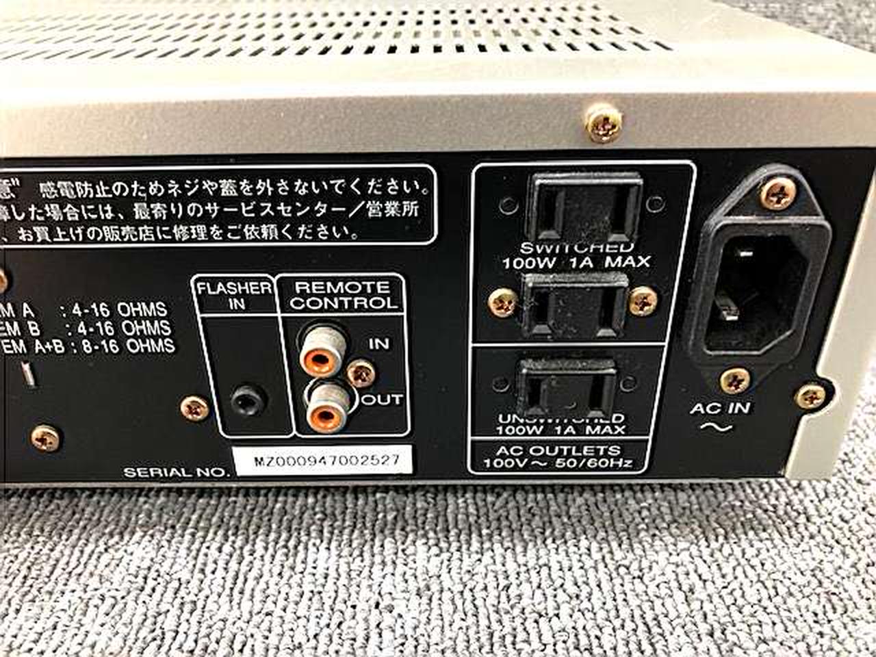 電源ケーブル、リモコン付属 キズヨゴレ有 再生周波数帯域:10HZ~50KHZ |