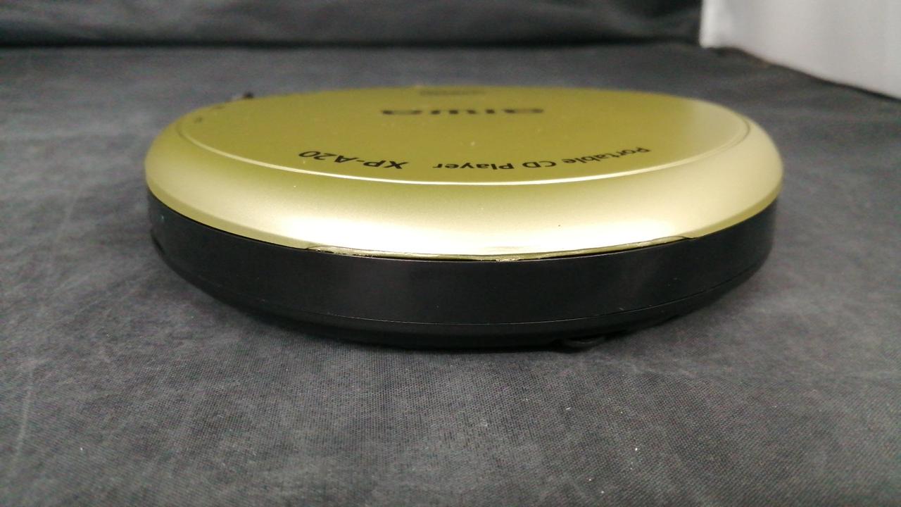 持ち運びに便利なポータブルタイプのCDプレーヤー。単3電池2本で駆動可能です。 |