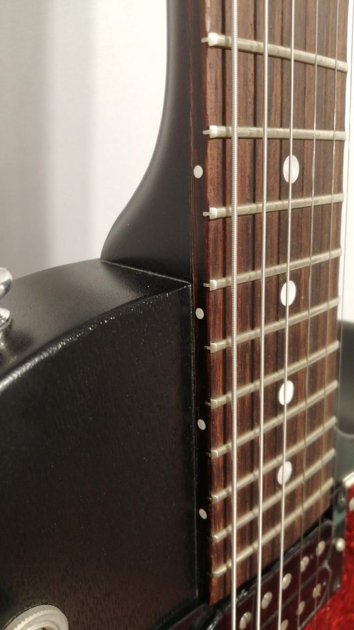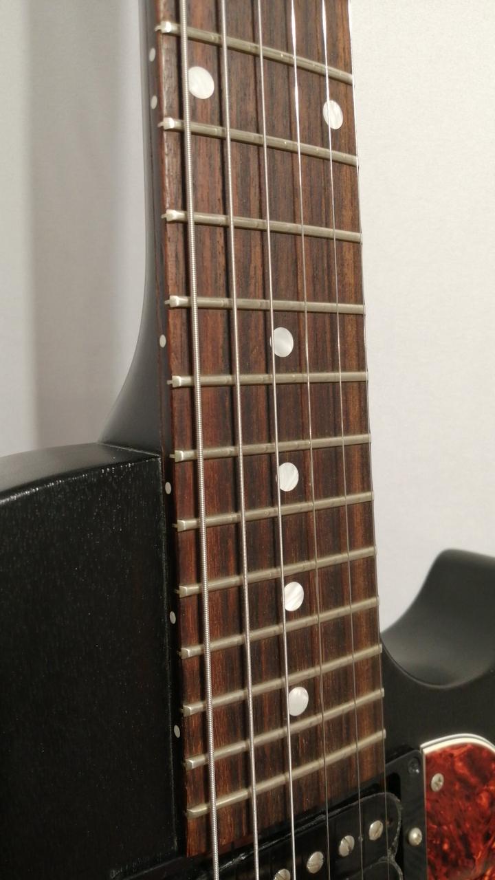 つや消しのサテン仕上げながら、レスポールスペシャルならではのデザインを踏襲。 |