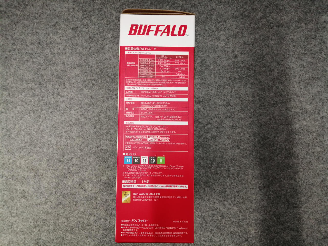 周波数:2.4/5GHz 無線LAN規格:Wi-Fi7(11be) |