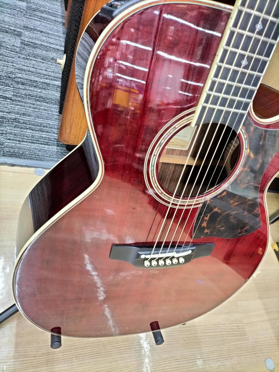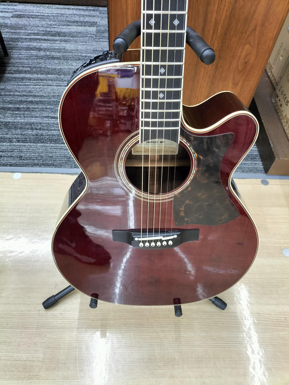 島村楽器とタカミネとのコラボレーション企画で誕生したモデル DMP50S WR 美しいワインレッドカラーにアバロンの装飾が施されたルックスは魅力のある雰囲気を醸し出します。弾き語りやバンドアンサンブル、フィンガースタイル ソロギターなど様々なスタイルにマッチする一本。 |