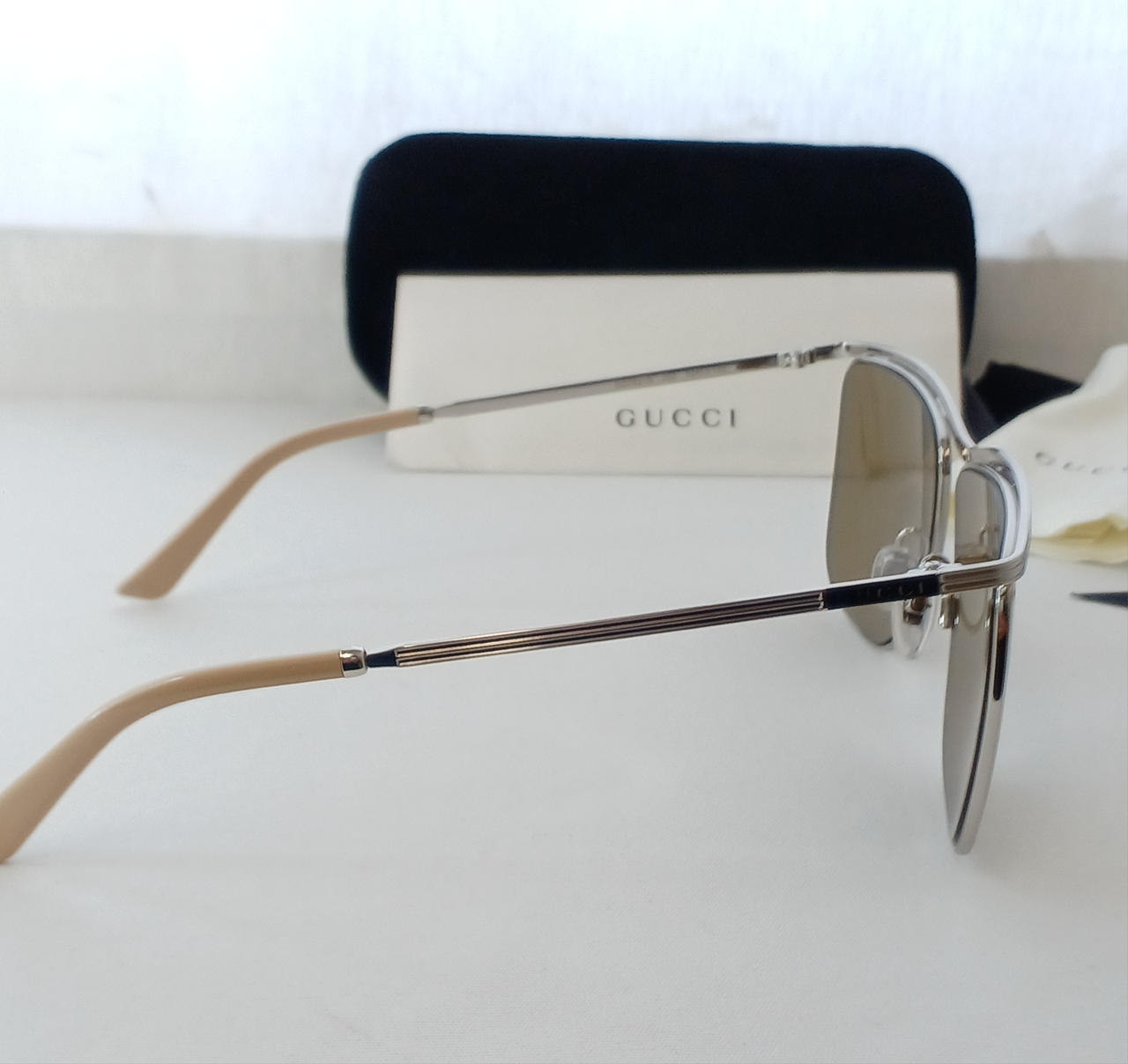 シアーなブラウンに銀縁、ベージュとオシャレな組み合わせ。 |