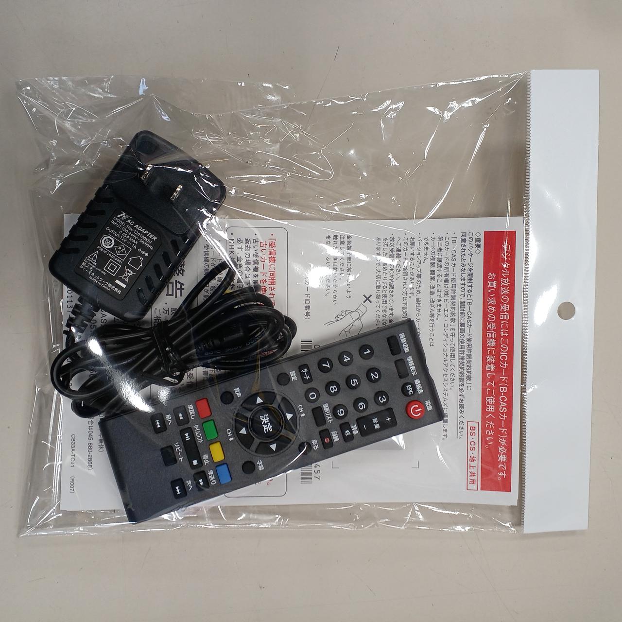 リモコン、電源(ACアダプタ)、B-CASカード |