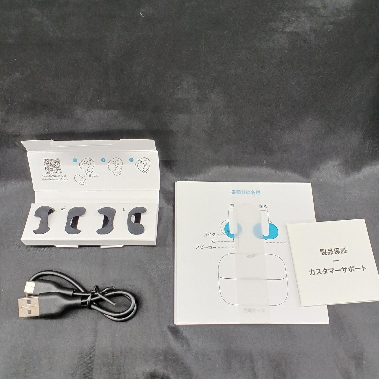 説明書/充電ケーブル/イヤーカフキャップ |