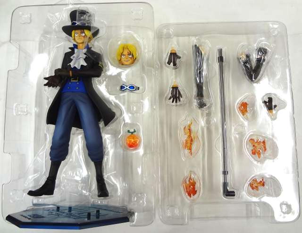 セット内容:フィギュア本体、差し替え用髪の毛前後、差し替え用表情パーツ、ゴーグル、メラメラの実、炎エフェクト×5、差し替え用腕左右、差し替え用手首×3(右2、左1)、鉄パイプ |