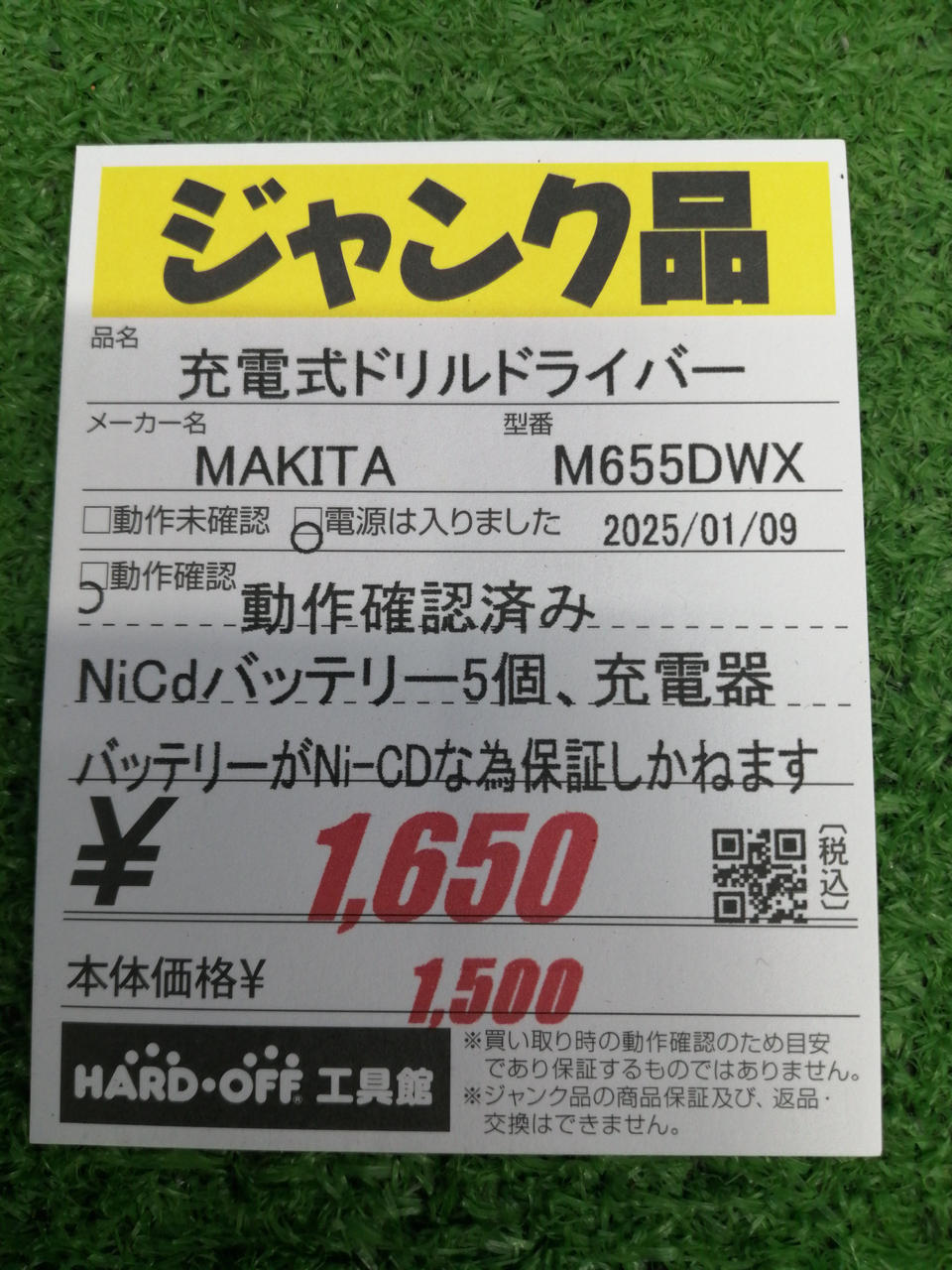 バッテリーがNi-CDな為保証しかねます |