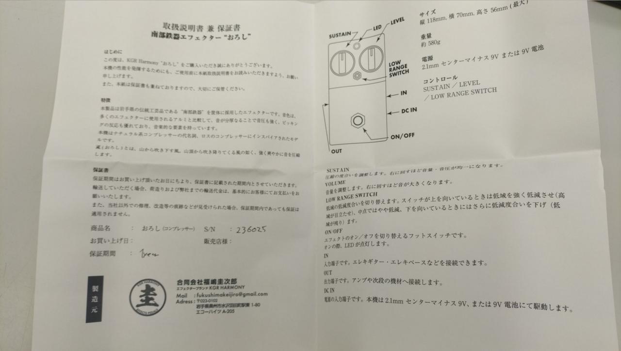 ROSSコンプを意識して製作された、ナチュラル系のコンプレッサー。 |