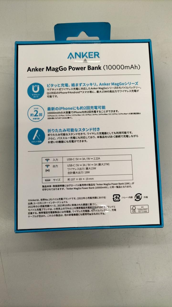 マグネット式ワイヤレス充電対応のモバイルバッテリーです。 |