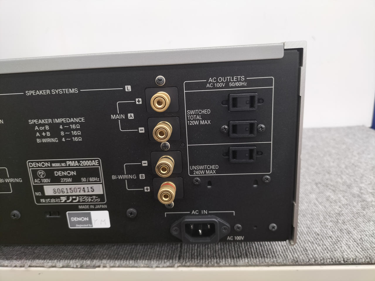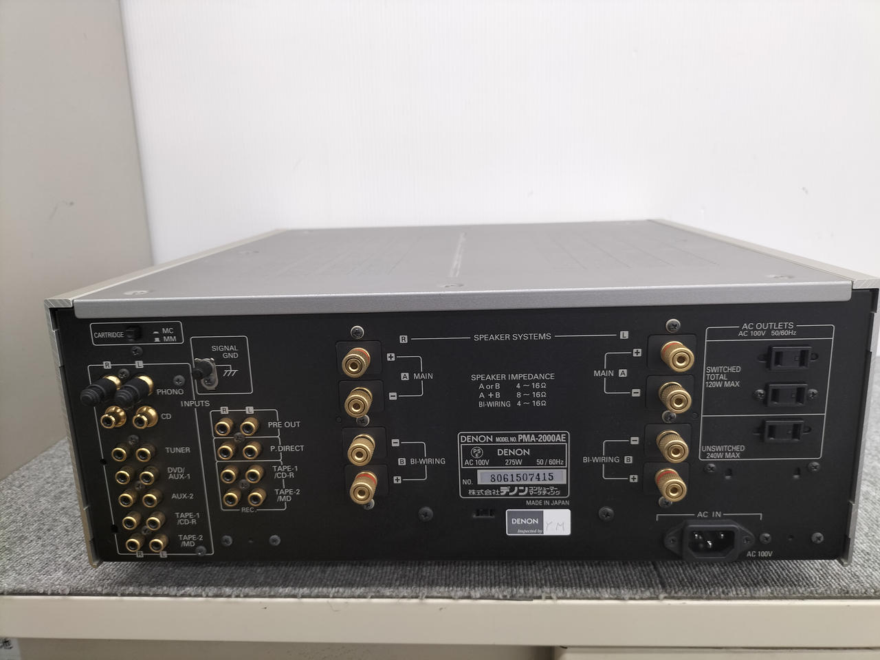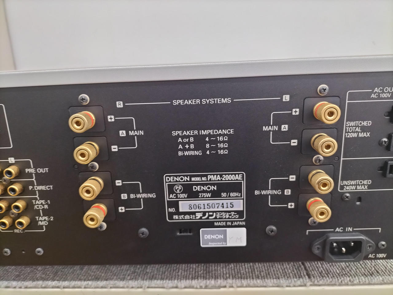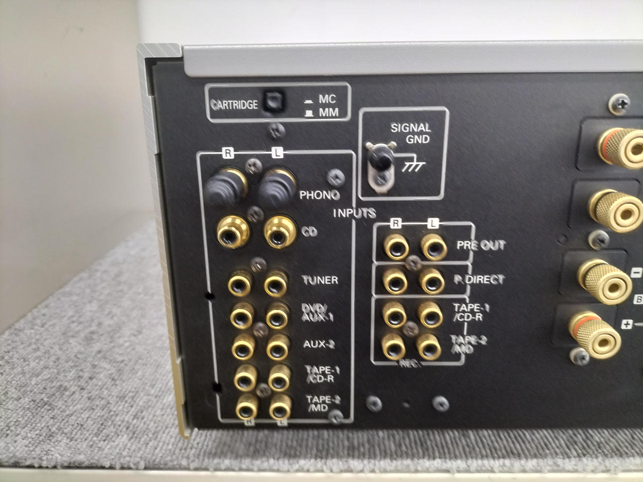 入力端子 ライン6系統、PHONO(MM/MC)1系統、パワーアンプダイレクト1系統 |