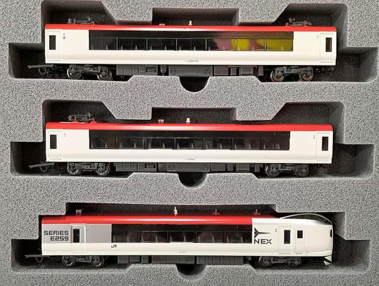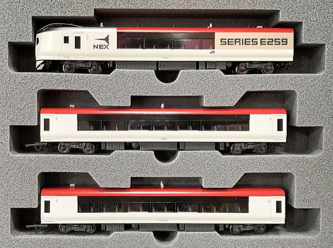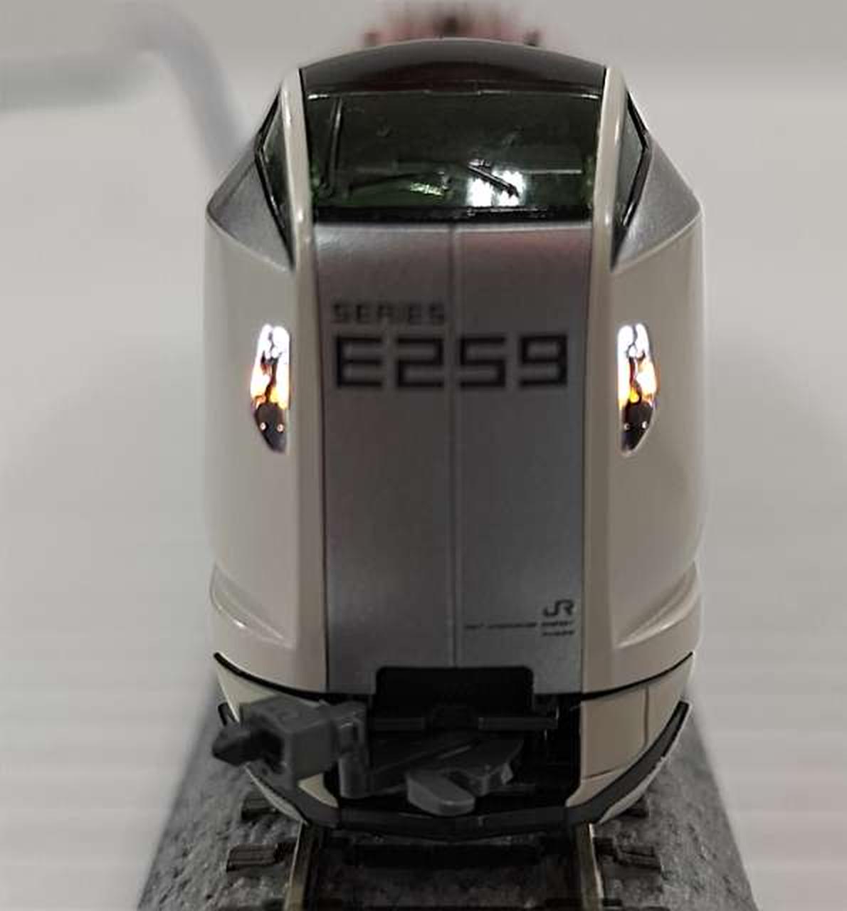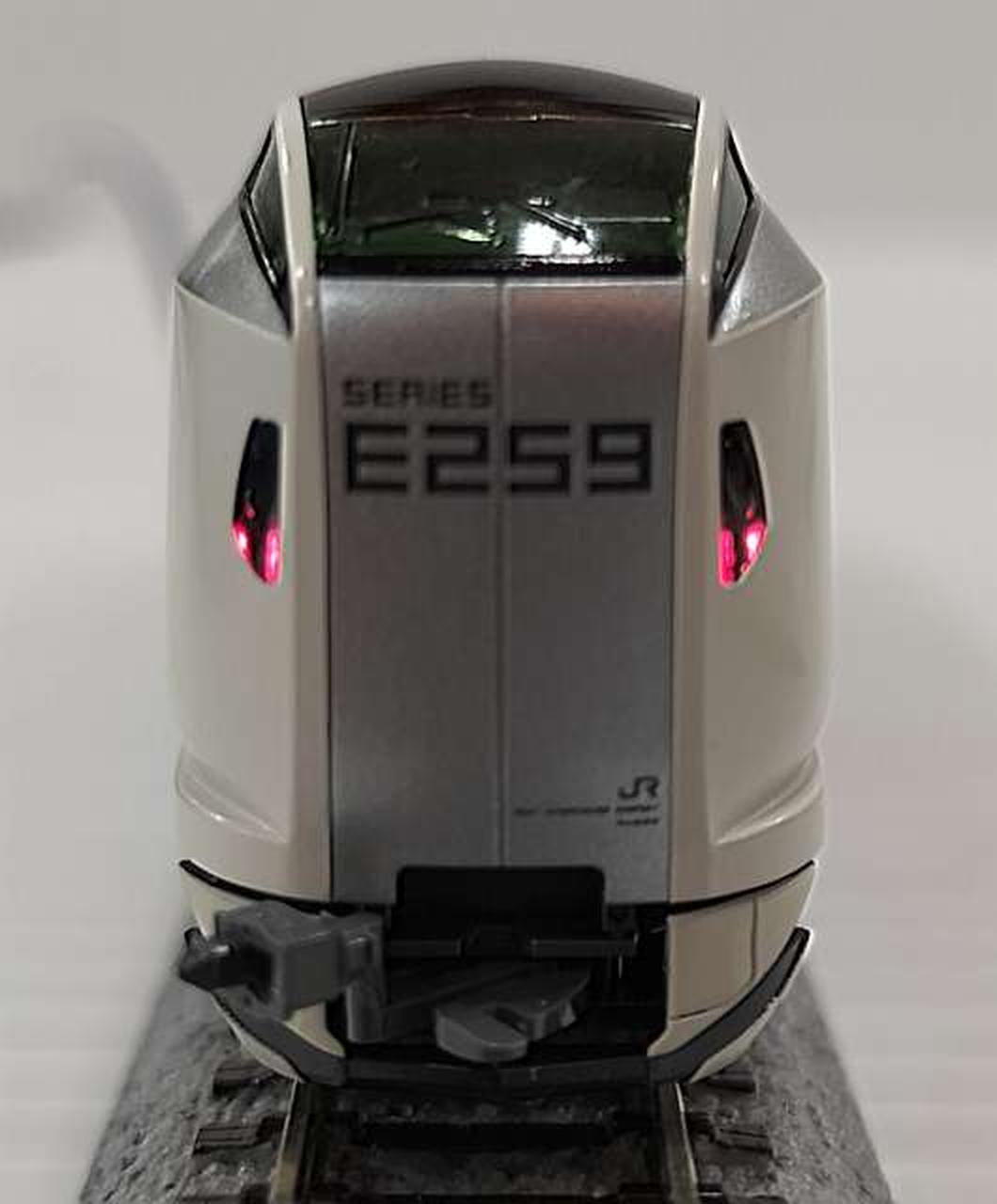 特徴的な「E259 SERIES」のロゴタイプも含め、シルバー基調の先頭車新デザインを美しく再現 |
