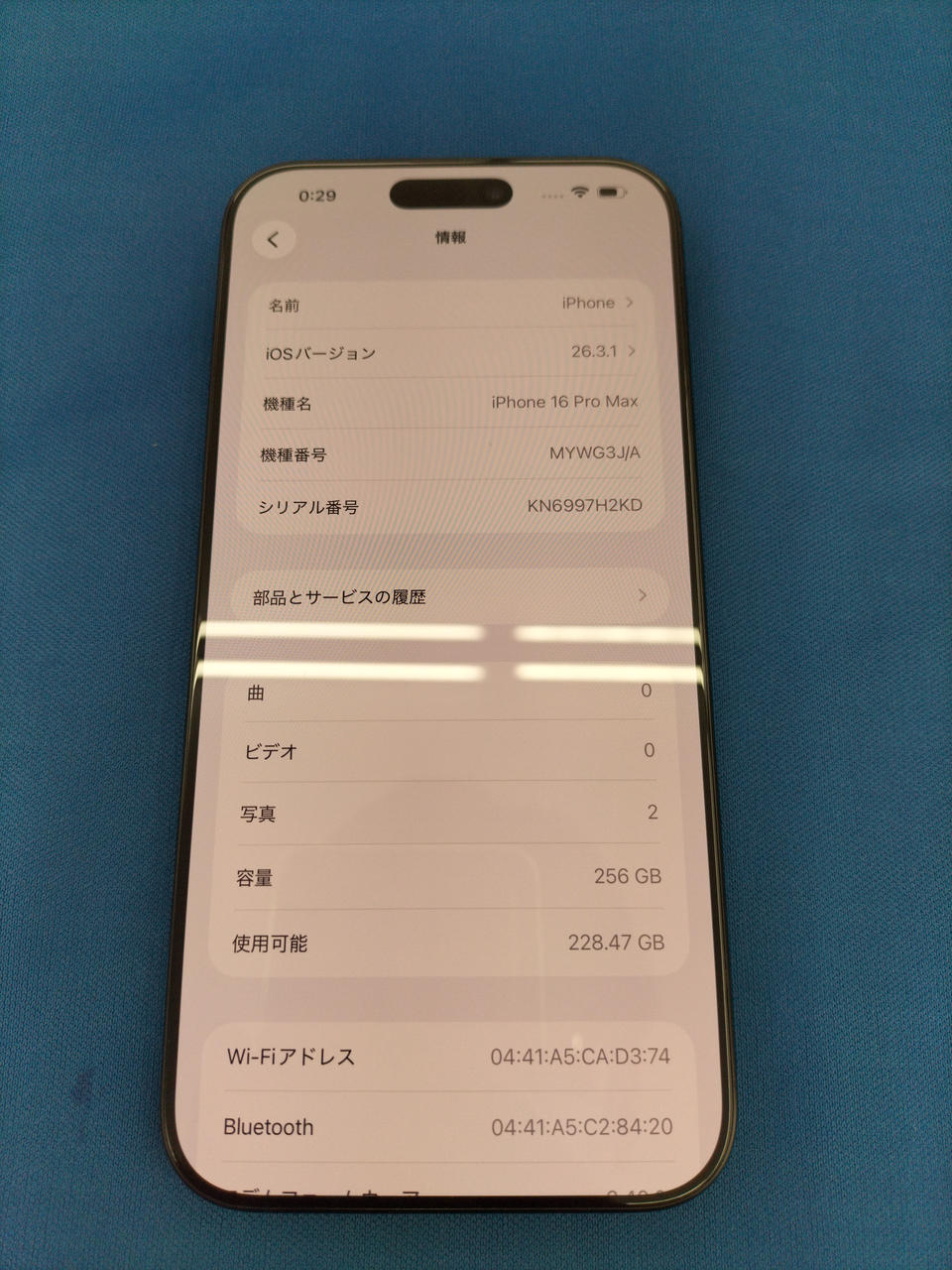 ・IOS:26.3.1 ・容量:256GB ・バッテリー最大容量:98% |