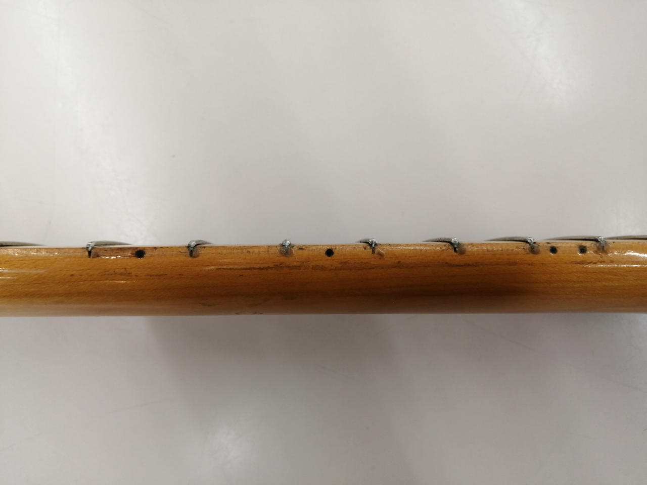 フレット打ち直しされておりますが、浮きなどがあります。(5,6弦18フレット辺りにフレット浮き) |