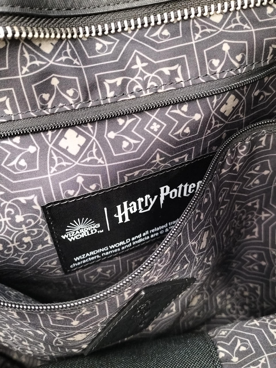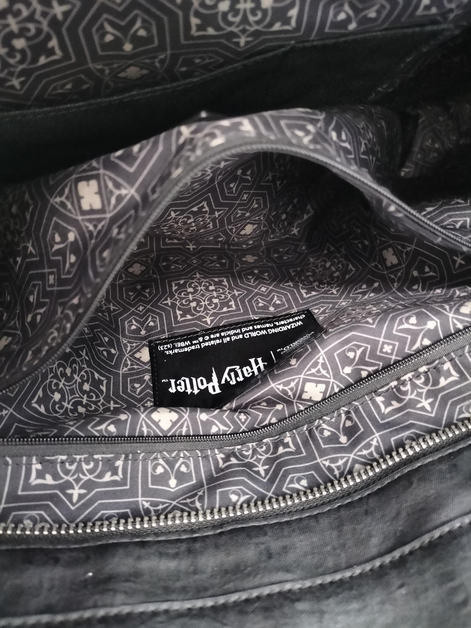 格子状の生地を組み合わせた厳格さが漂う一面と、スリザリンの型押しを施したフラットな面を組み合わせ、秘された2面性を感じさせる仕上がり。 |