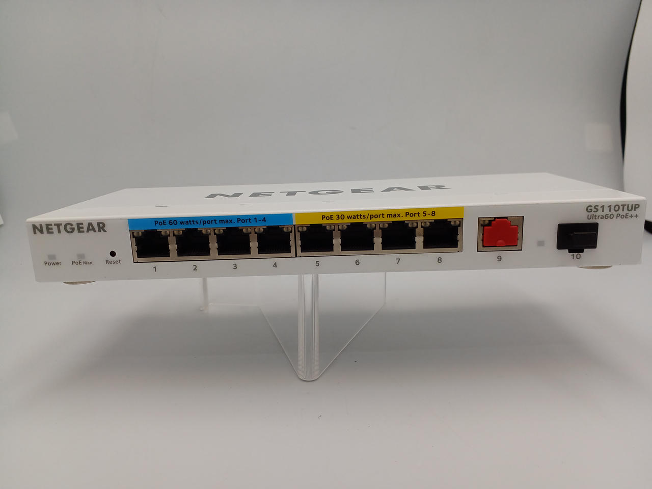 PoE+対応のギガビット8ポート(総給電能力55W)と独立して使用 できる1GSFPスロットを2つ持つハブ |