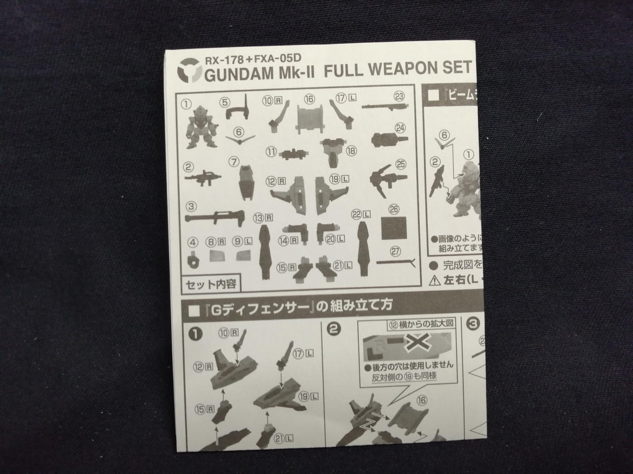 説明書、武装一式、Gディフェンサー |