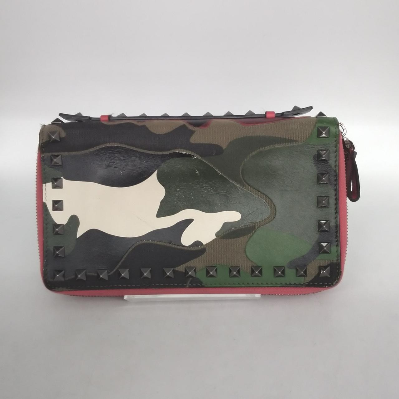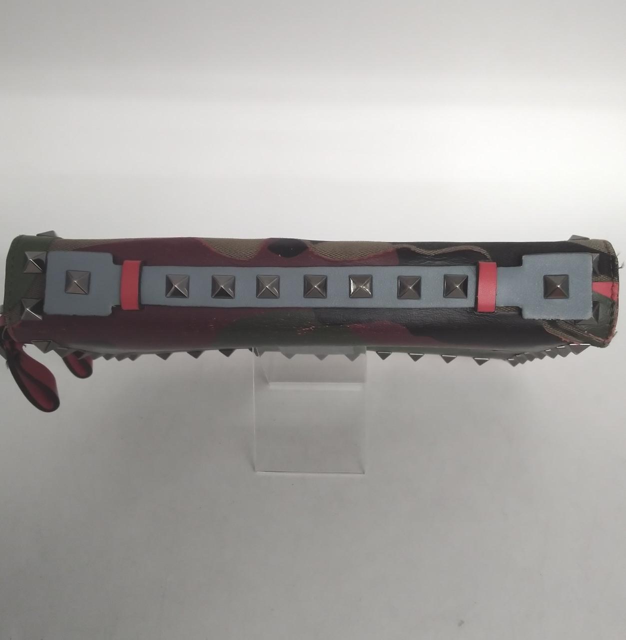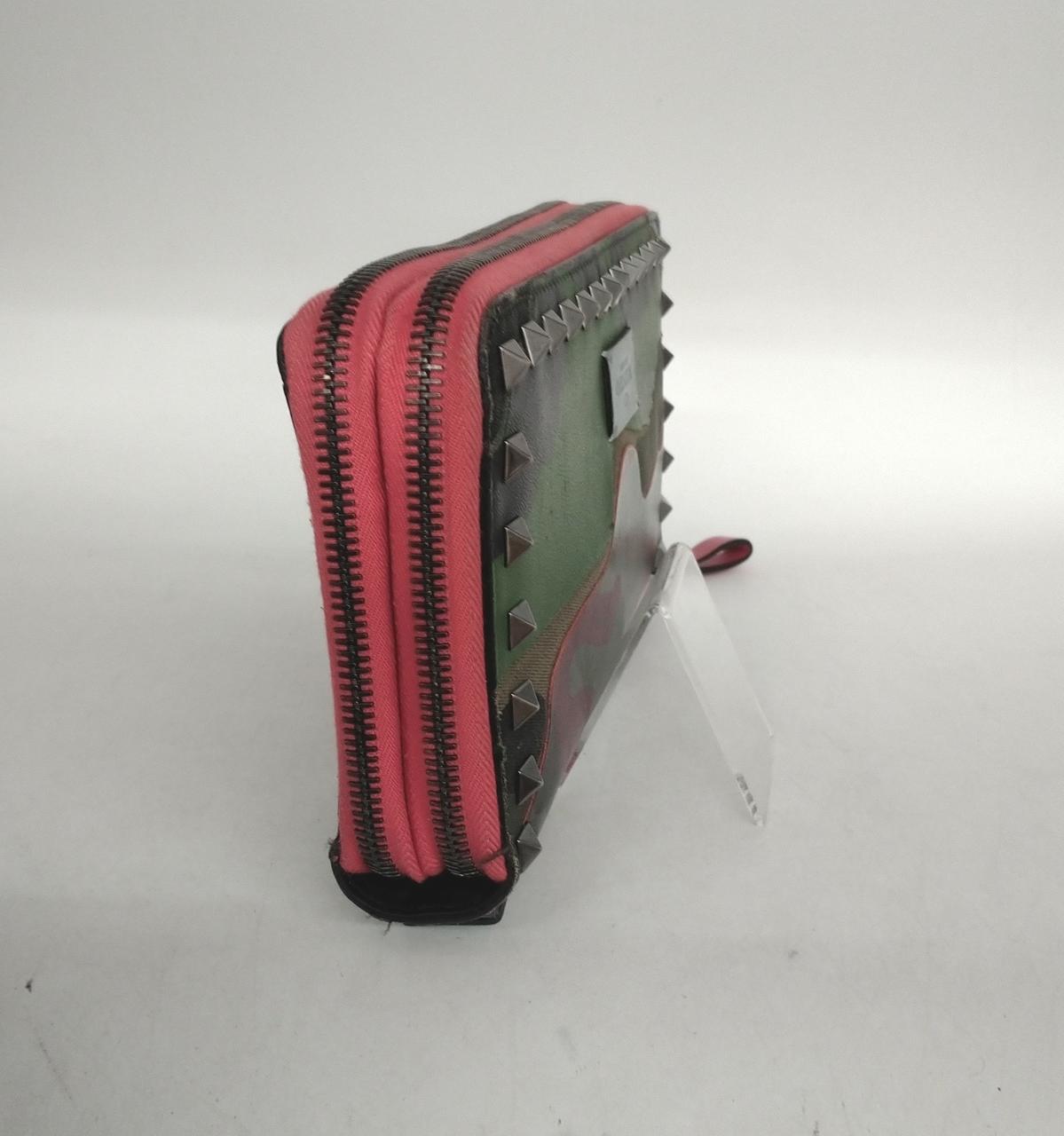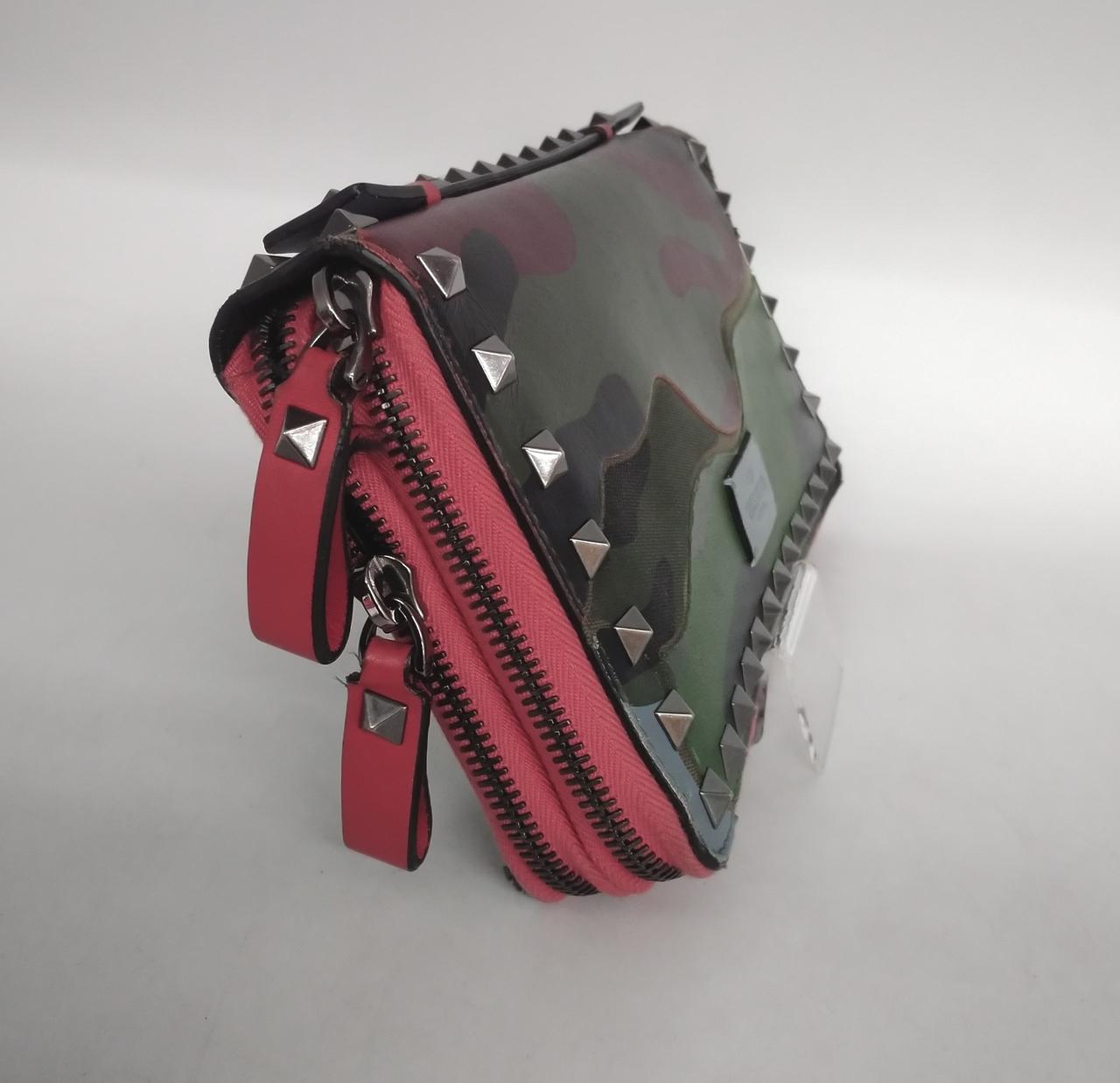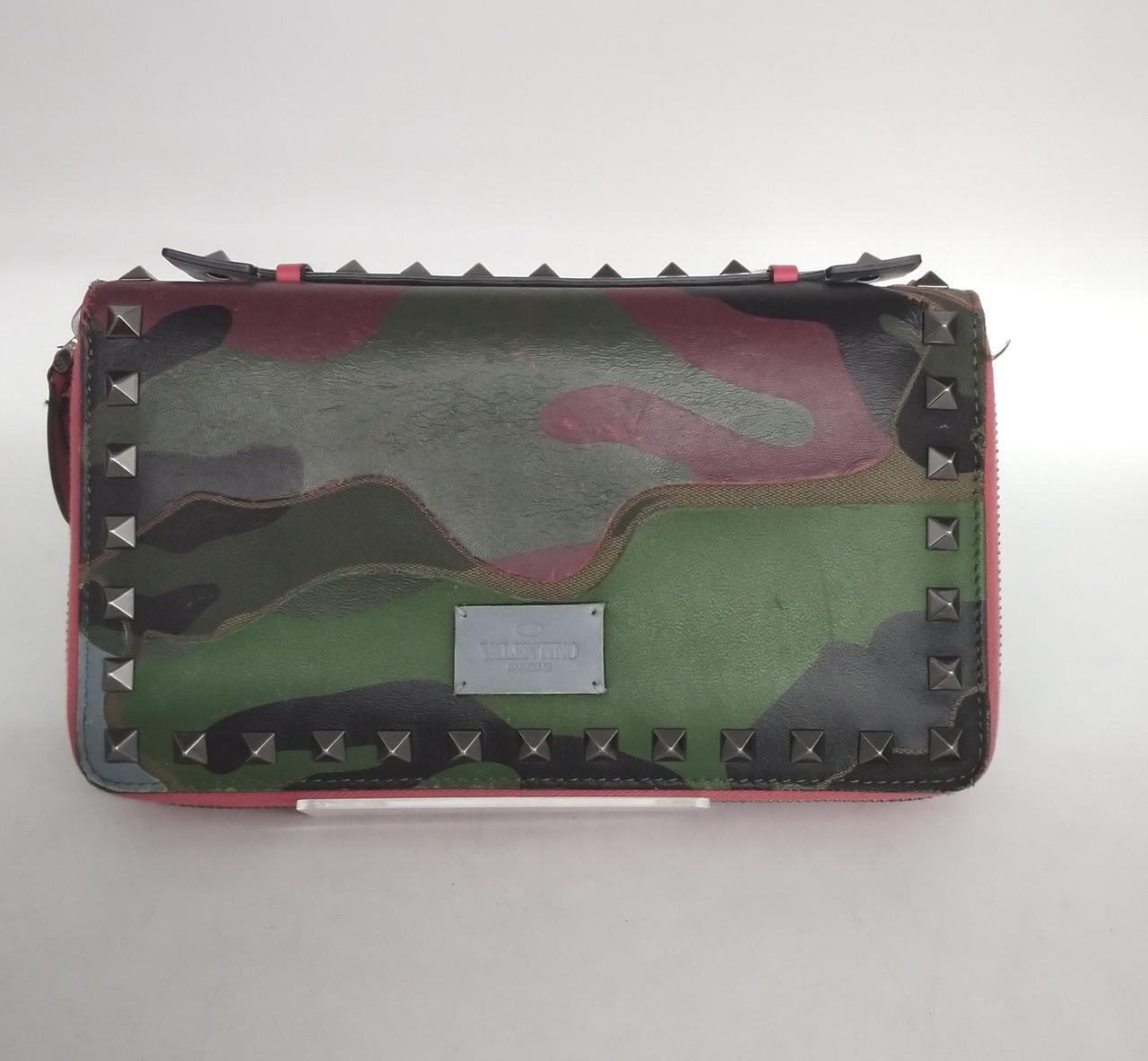 カモフラージュ柄にヴァレンティノを代表するロックスタッズがデザインされたダブルファスナー長財布でございます。複数のポケットで収納力と機能性を兼ね備えた商品でございます |
