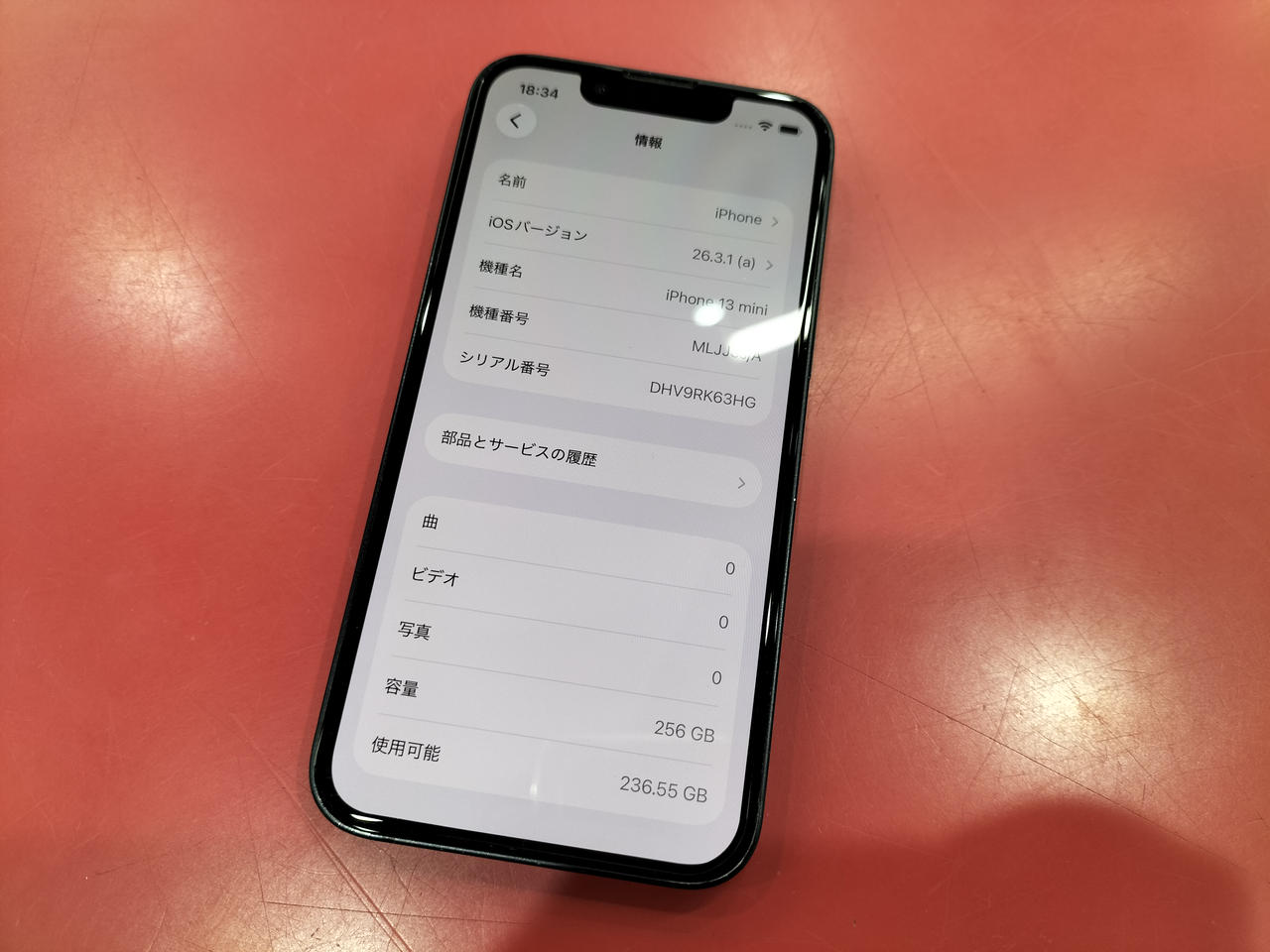 画面サイズ:5.4型 IOS:26.3.1(a) 容量:256GB SIMロック:なし 最大容量:100%(非純正) 5G対応 |