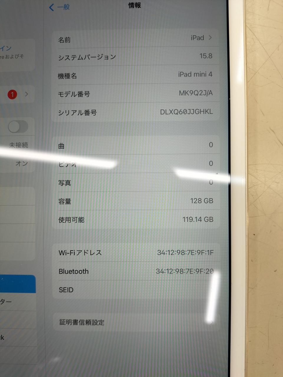Wi-Fiモデル IOS:15.8 ストレージ:128GB 画面サイズ:7.9インチ |