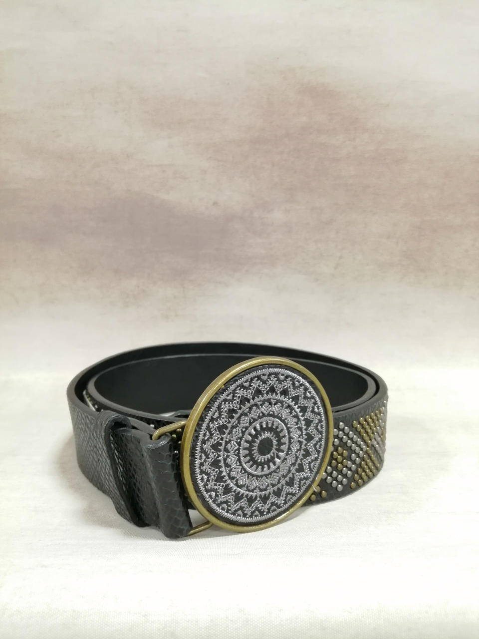 デシグアルのスタッズ刺繍ベルトです。 |