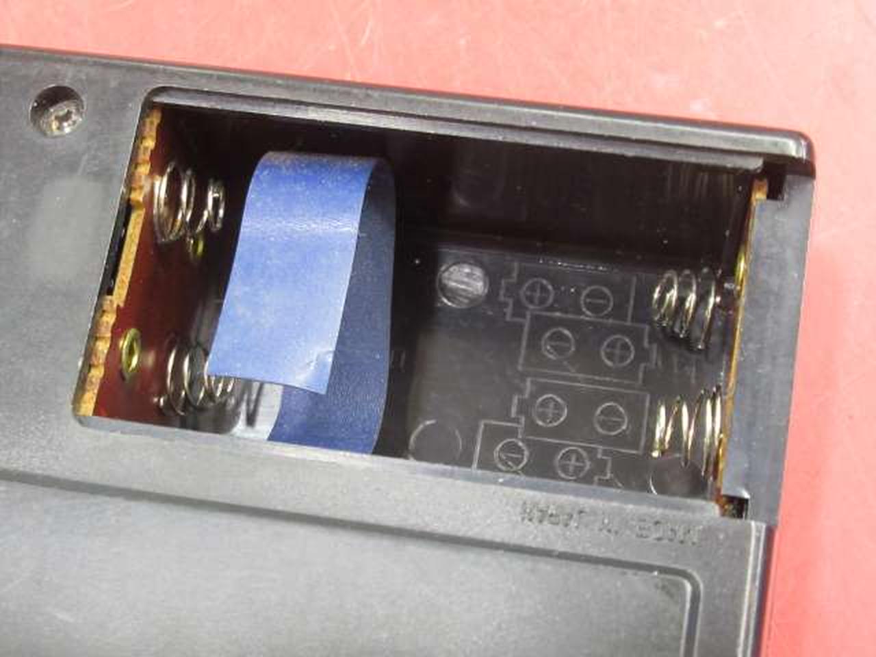 単3電池×4本でローラーは回りますが、テープを挿入するとモーターが弱っているのか、すぐに止まります。 |