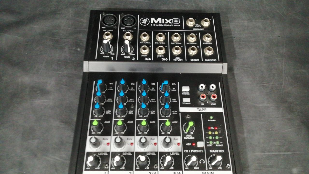 コンパクトな8chアナログミキサー。全チャンネルに3バンドEQを装備。 |
