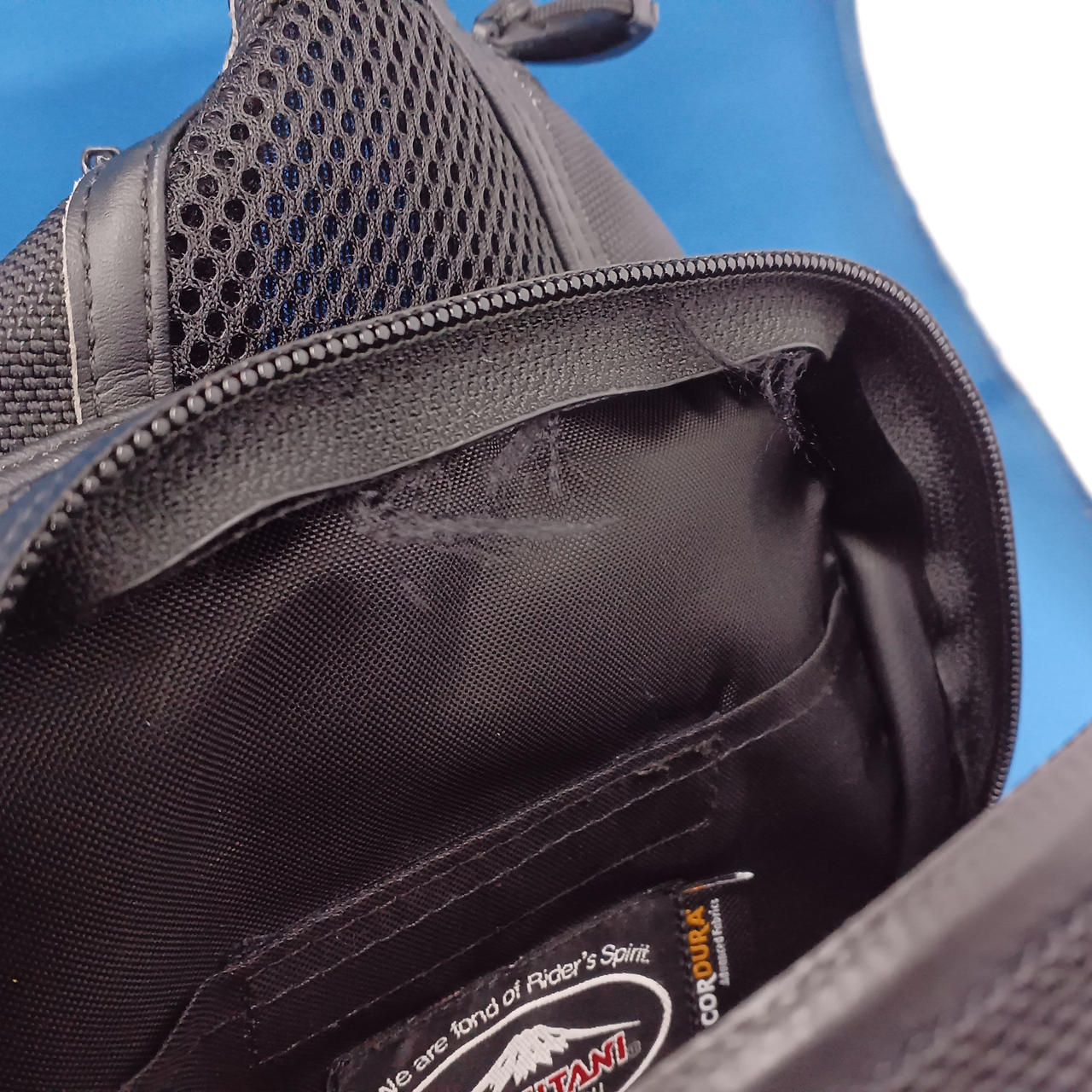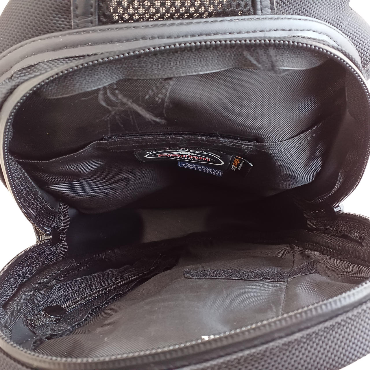 内側にほつれ、全体的に若干の使用感あり。写真参照。レインカバー付き。