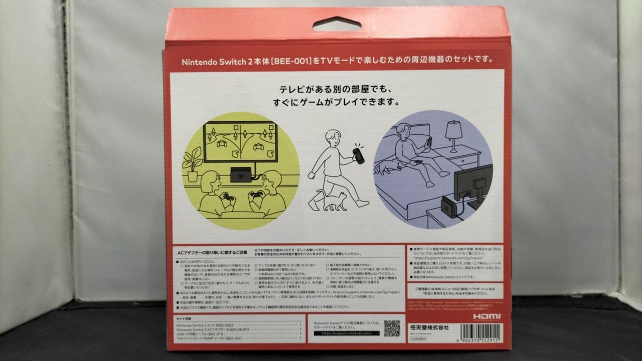 NINTENDO SWITCH 2 本体をTVモードで楽しむための周辺機器のセットNINTENDO SWITCH 2 ドック、ACアダプター、USB-C充電ケーブル、ウルトラ ハイスピードHDMIケーブル |