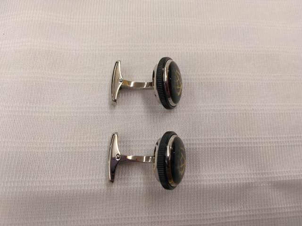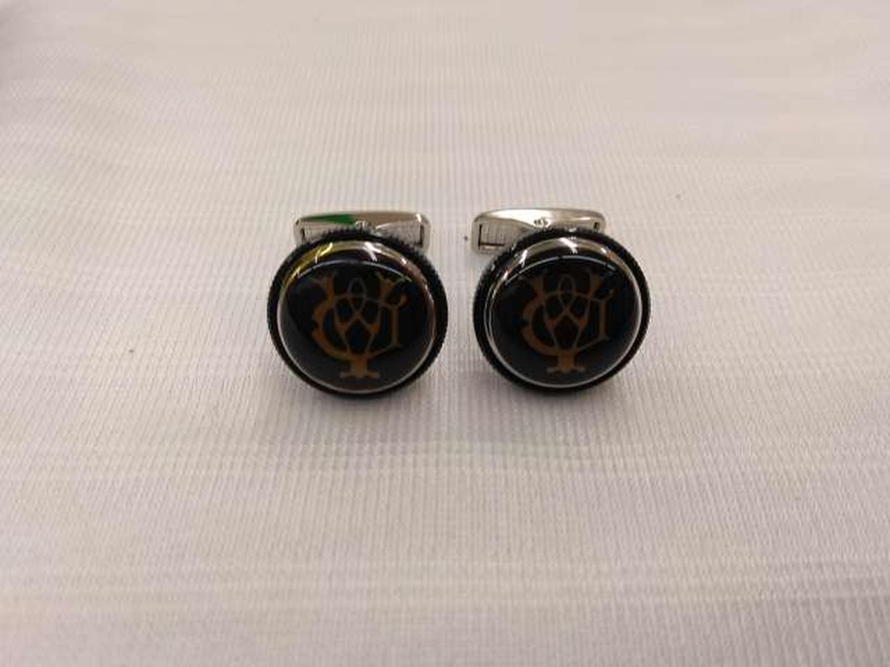 円形の台座にゴールドのADロゴ(アルフレッド・ダンヒルのイニシャル)を重ねたゴシック調のロゴです。
