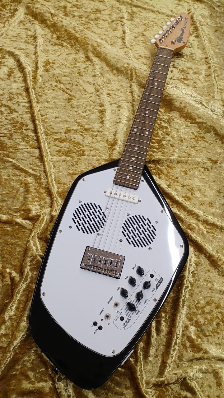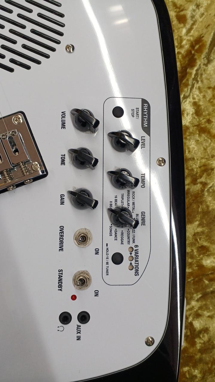 ファントムシェイプのアンプ内蔵ギター。リズムマシン,オーバードライブ,AUX入力,ヘッドホン端子搭載 |