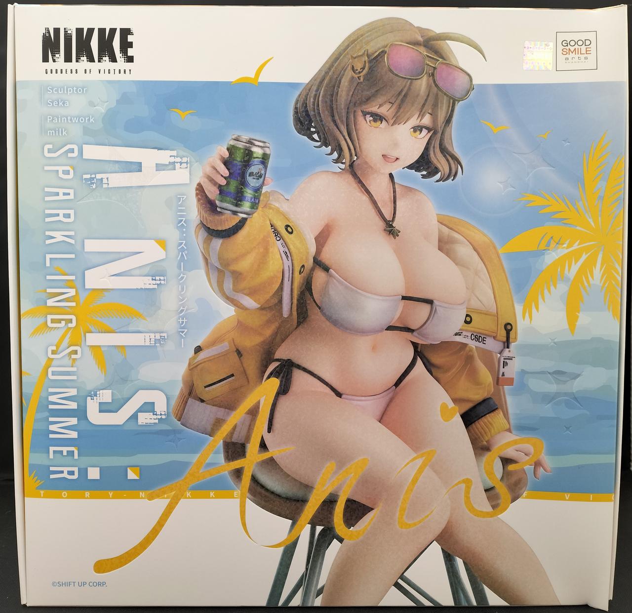 人気スマホゲーム『勝利の女神:NIKKE』より、夏休み気分の「アニス」が1/7スケールのフィギュアになって登場です。ふだんは仕事が忙しい彼女ですが、今回はお気に入りの水着を着て、指揮官様に缶を掲げています。アニスを象徴する明るい笑顔と圧倒的な肉感ボディ、そしてしなやかで柔らかい指先の表現まで、キャラクターの魅力を最大限に引き出しています。フィギュア本体は取り外し可能な仕様のため、様々なシチュエーションでの展示を楽しむことができます。サマーバージョンのアニスを是非指揮官様のお手元にお迎えください。 |