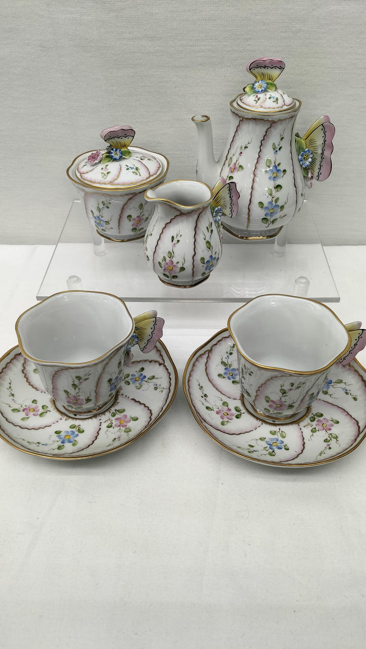 ポット、シュガーポット、クリーマー、カップ&ソーサー2客 |