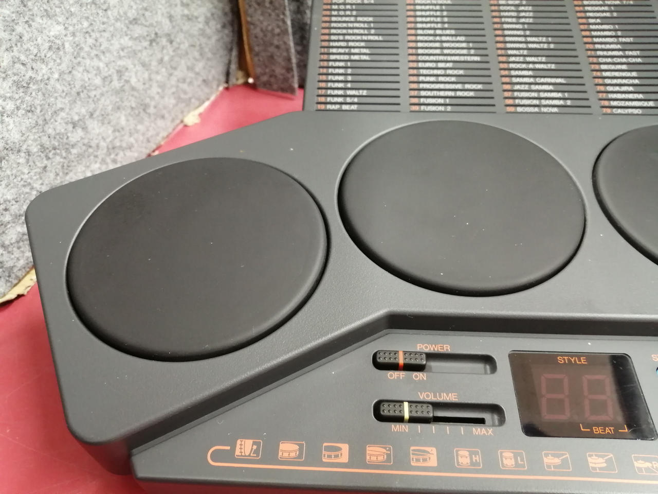 音色:254音色 デモ・パターン:計100曲内蔵 叩き易い角度にこだわった |