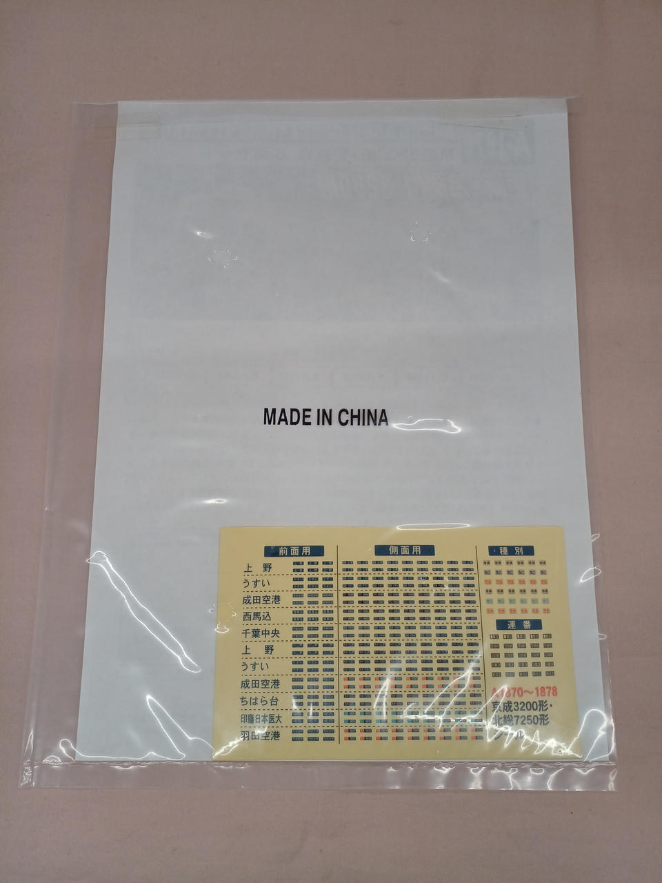 説明書、行先シール付き |