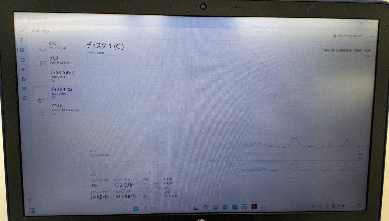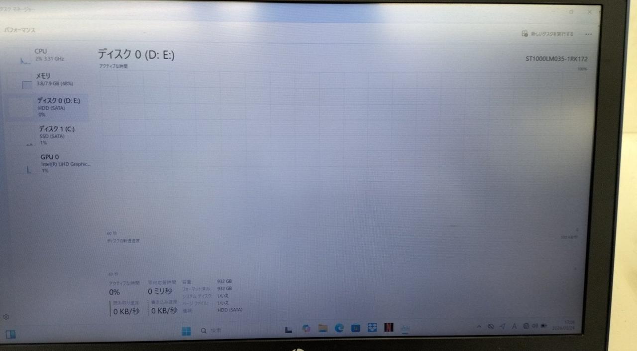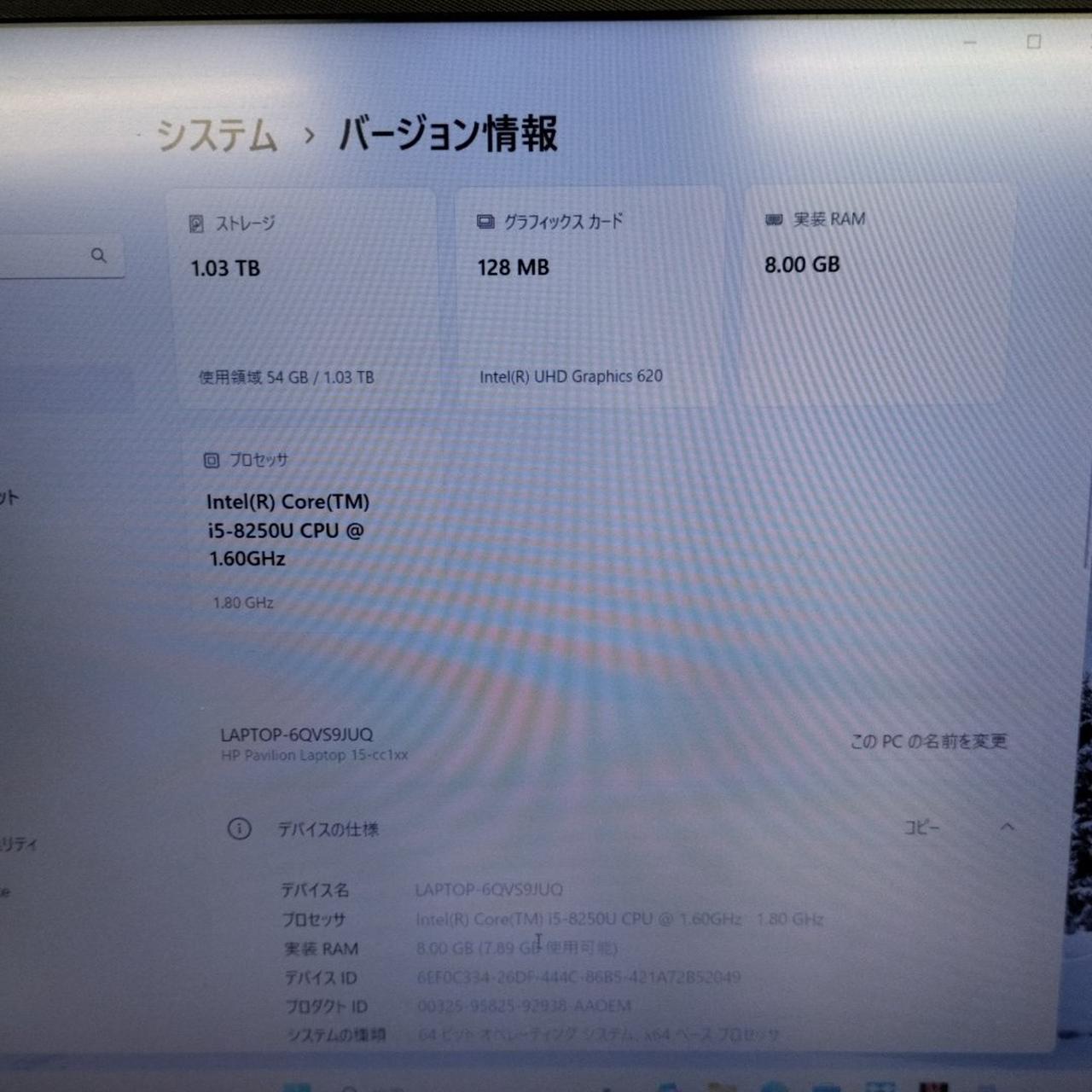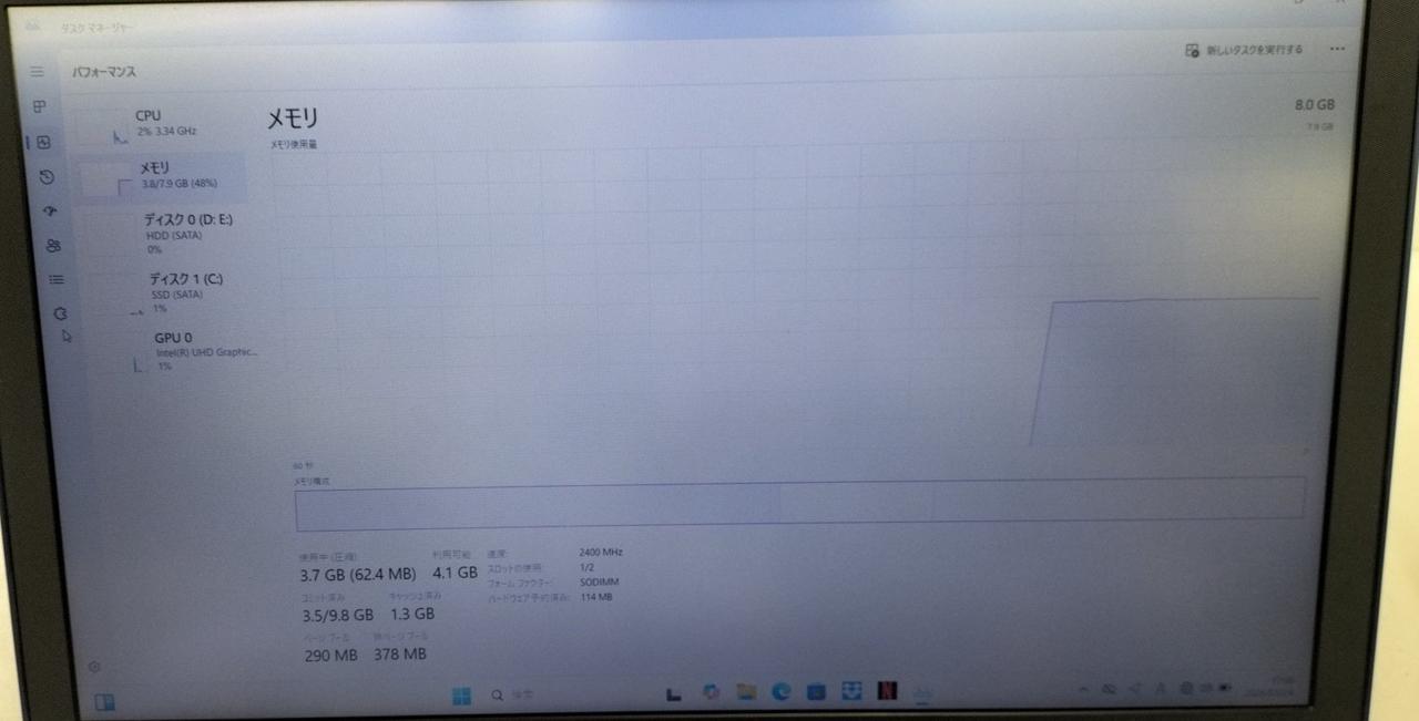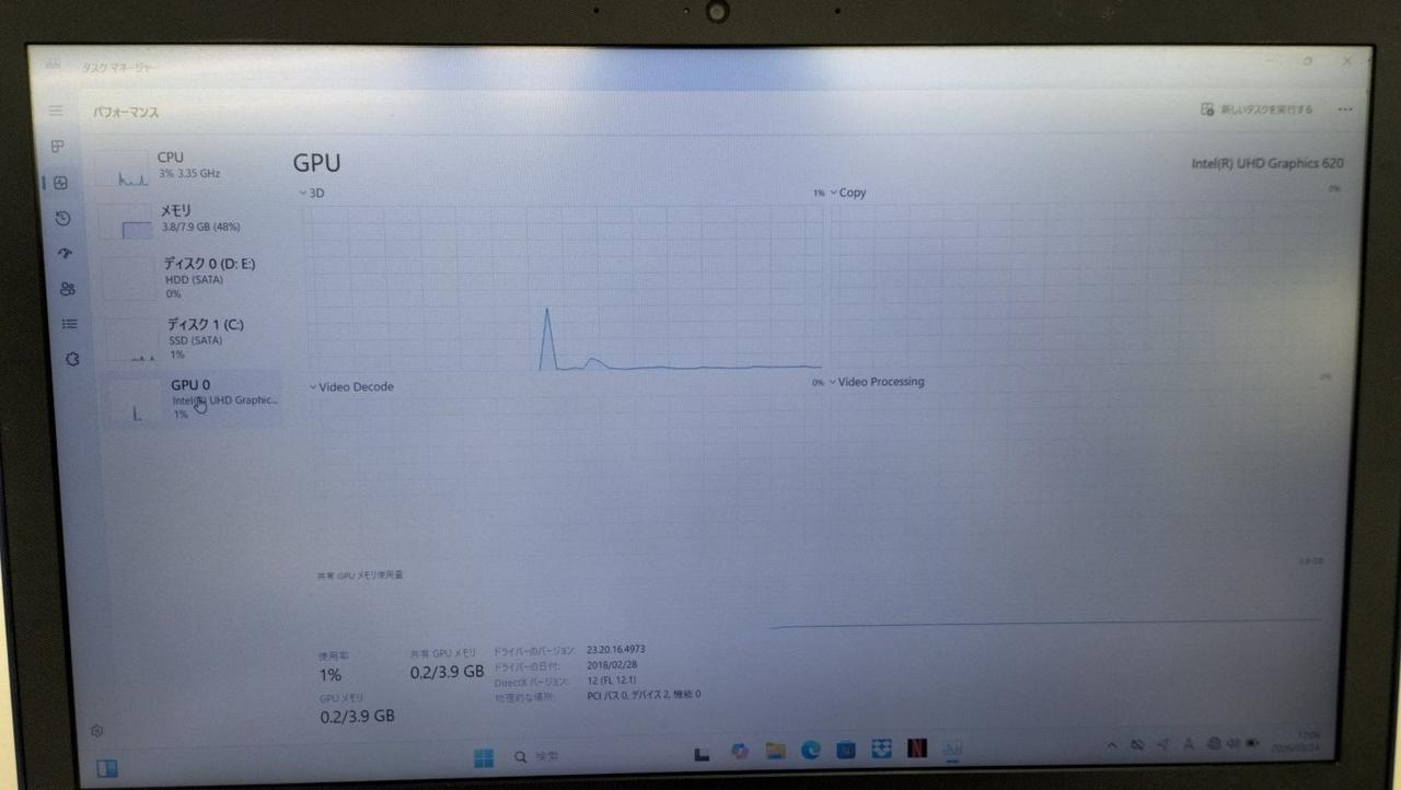 RAM:8GB ストレージ:SSD128GB/HDD1TB GPU:Intel UHD Graphics 620 4GB |