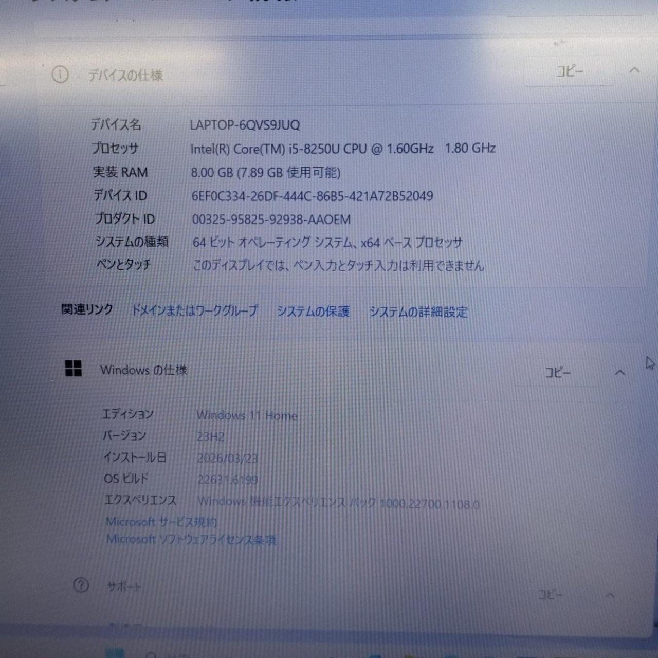 OS:Windows11 HOME 64bit CPU:Core i5-8250U 1.60GHz 4コア 8スレッド |