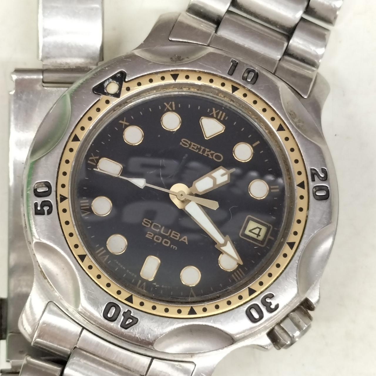 全体的にキズヨゴレが目立ちます。また竜頭は回りますが針が動きません。電池を入れ替えたら動きはしたため竜頭に不具合が見受けられるため修理が必要かと思われます。そのためジャンク品での出品です。 |