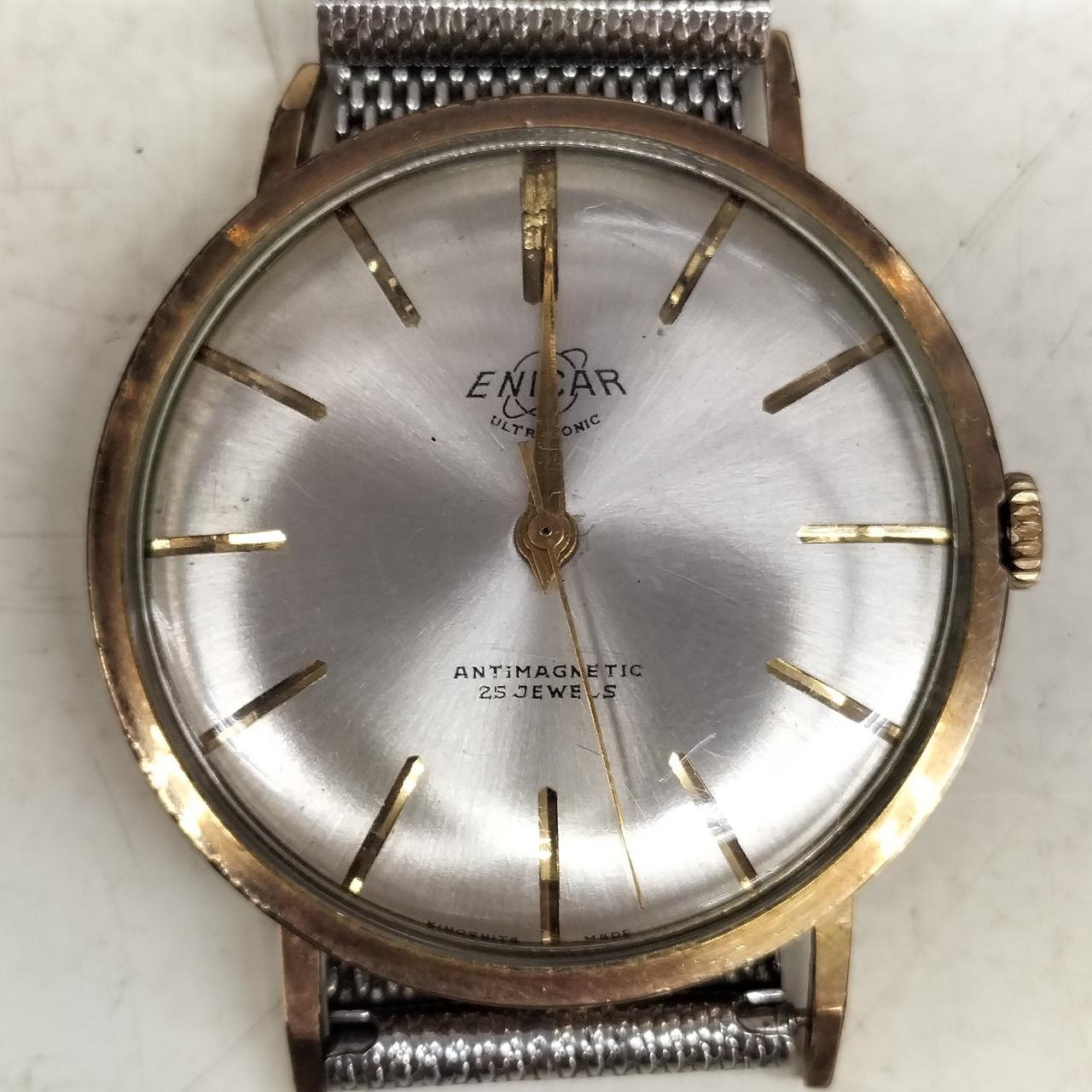 全体的に使用感が見受けられます。小キズが目立ちます。不動です。竜頭も巻けません。コレクション、パーツ取りのジャンク品での出品です。 |