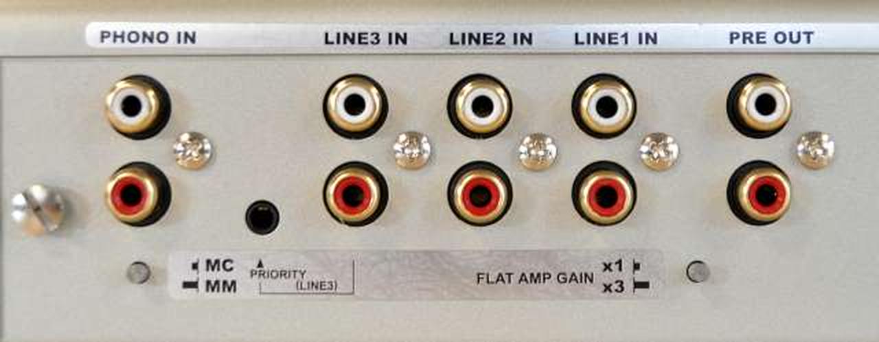RCAジャック4系統(PHONO、LINE1~3) 3.5mmステレオジャック1系統(LINE3の優先入力)×1 |