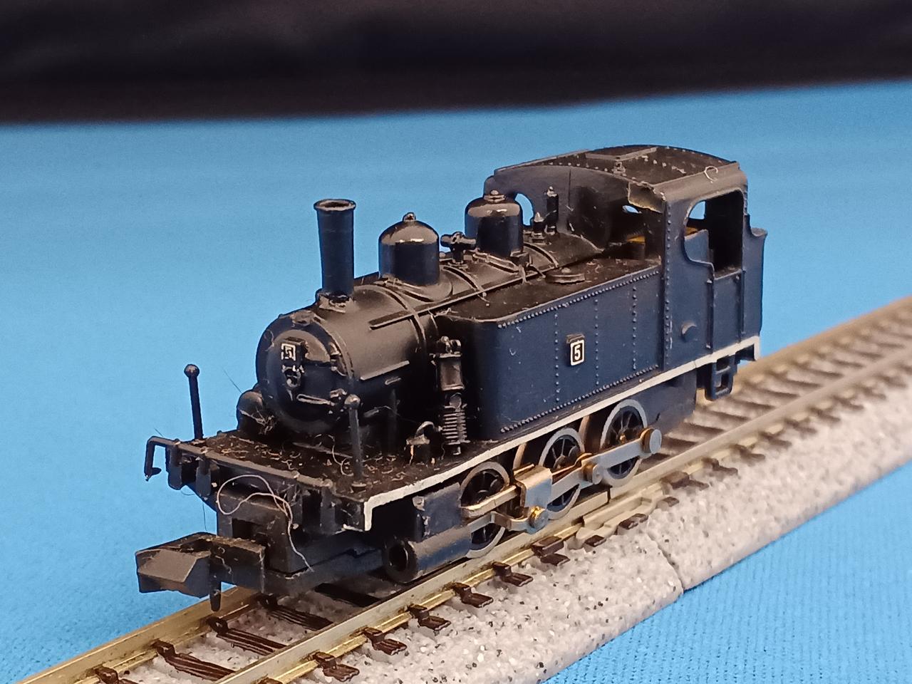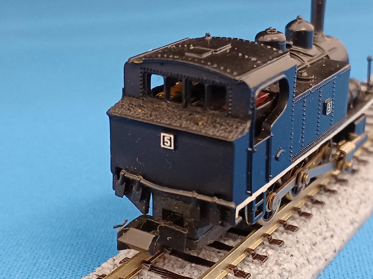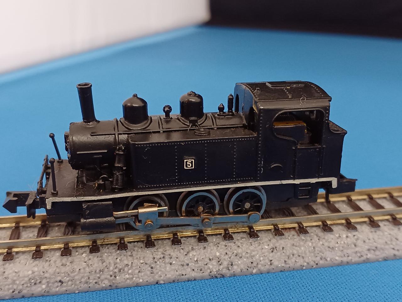 今まで当店に入ってきたトミックス伝説のK.S.K.Cタンク機関車は自分が担当したもので5年間にたった3両で、そのうち1両は不動、もう1両はバック走行のみ可という状態でしたが、通算3両目でギクシャク気味ではありますが、はじめて前進走行が可能な個体に当たりました。バックマンOEMのCタイプ入換ディーゼル機関車同様、バック走行の方が比較的スムーズなのも同様な症状です。 走行可能個体は数が少なく貴重な一品です。トミックスは過去の絶版モデルのリニューアル発売を行う傾向が強いのですが、3軸動輪で集電に難がある小型蒸気機関車は手に余るのか、出していません。週刊鉄道模型系の雑誌に供与したBタンク機はパーシーのリデコなので、キハ02が現代に甦ったのなら、Cタンクも是非リニューアルして欲しいものです