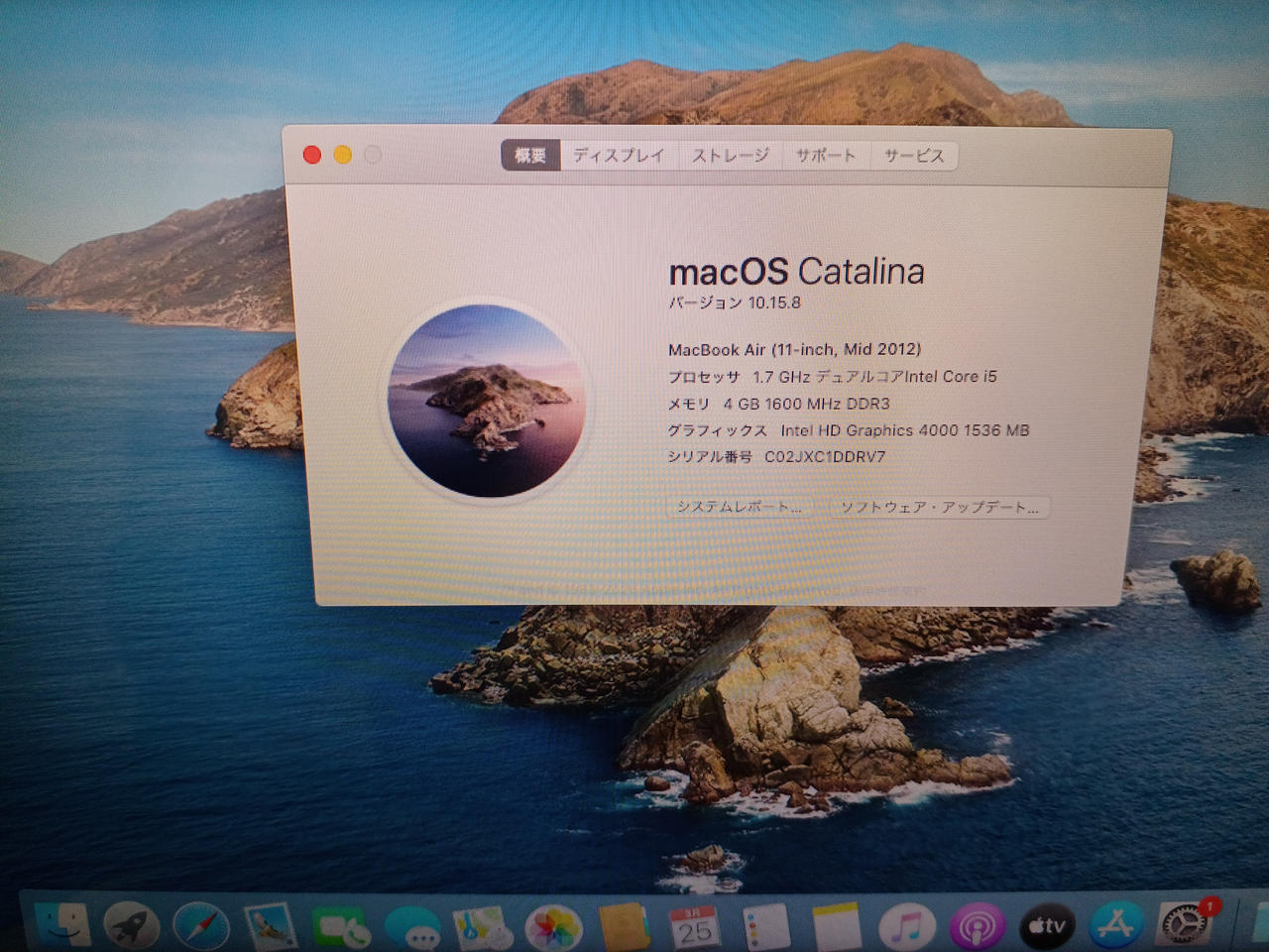 OS:CATALINA 10.15.8 CPU:1.7GHZデュアルコアINTEL CORE I5 メモリ:4GB ストレージ:128GB グラフィックス: INTEL HD GRAPHICS 4000 1536MB