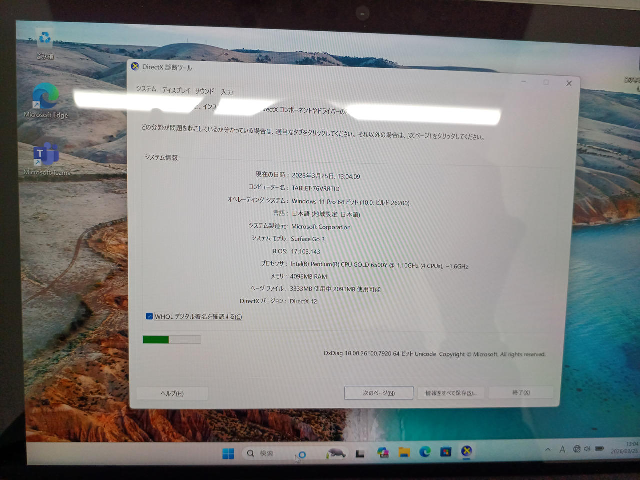 OS:WINDOWS 11 PRO 64 BIT CPU:Intel Pentium Gold 6500Y@1.10GHZ~1.6GHZ メモリ:4GB ライセンス認証:〇 |