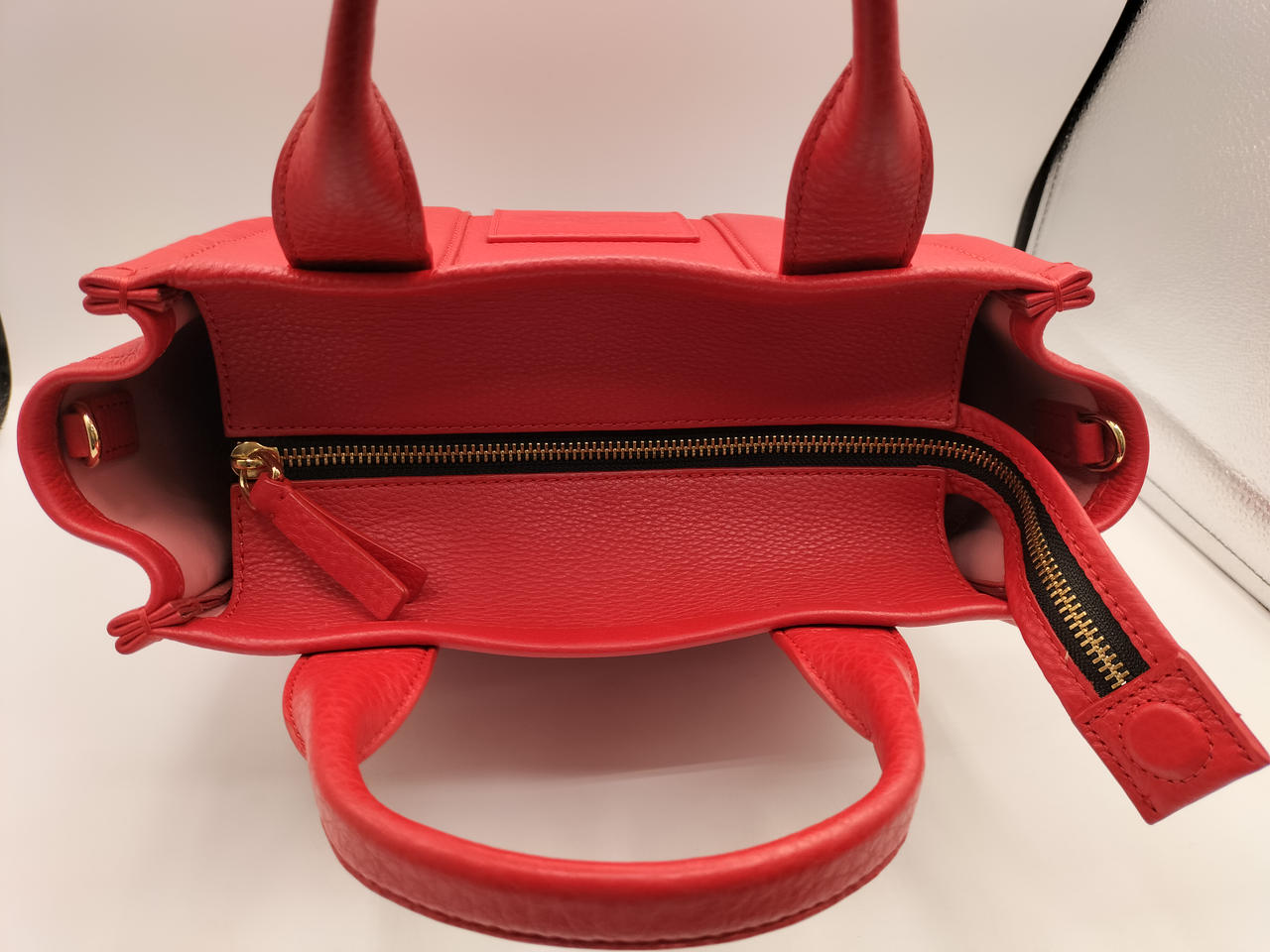 長めに誇張されたトップジッパーはサイドまで大きく開くため使い勝手がよく, 取り外し可能なストラップ付きなのでトップハンドル、クロスボディバッグとしてお使いいただけます。 |