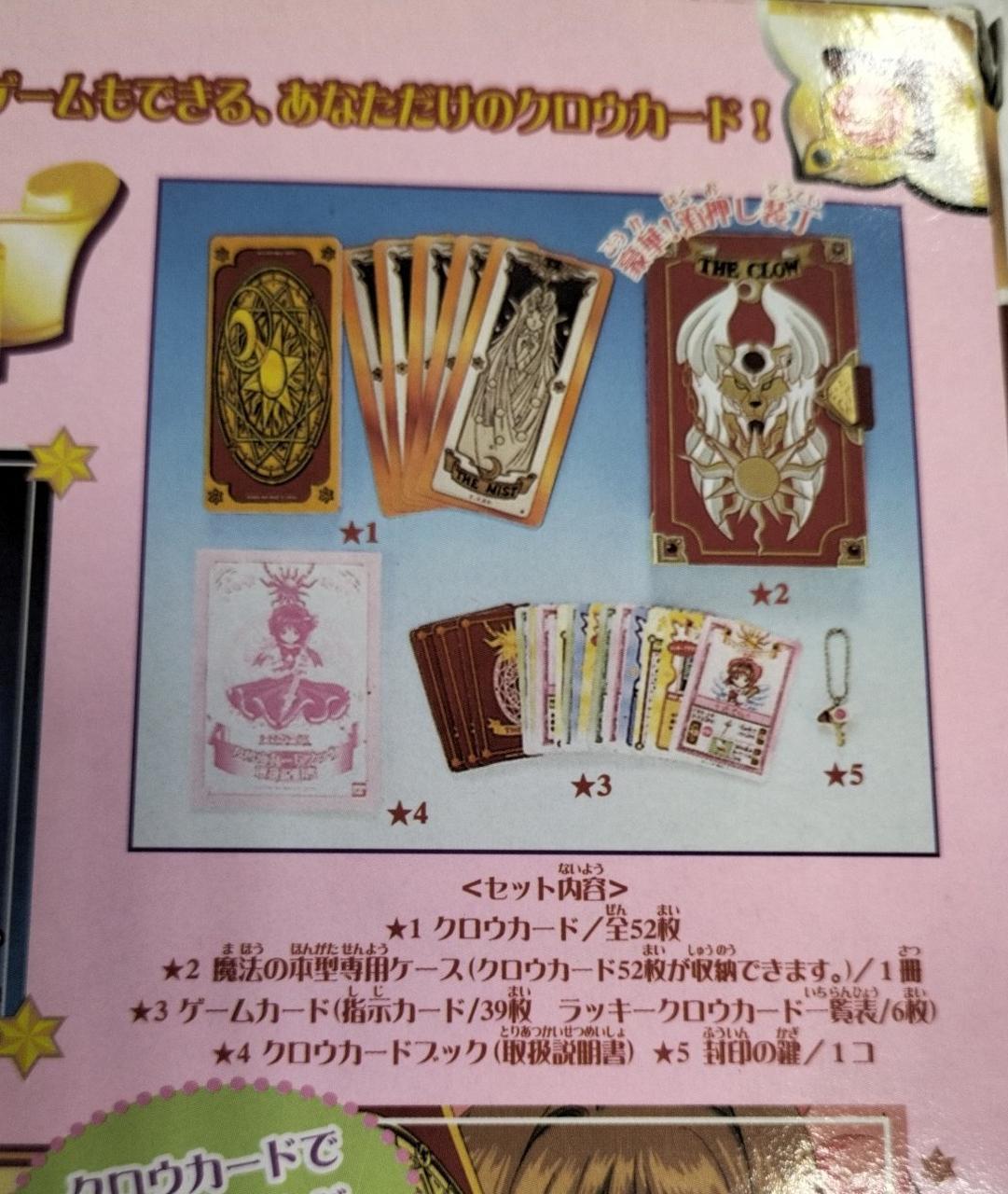 化粧箱、取扱説明書、クロウカード52枚、専用ケース、ゲームカード45枚、封印の鍵 |
