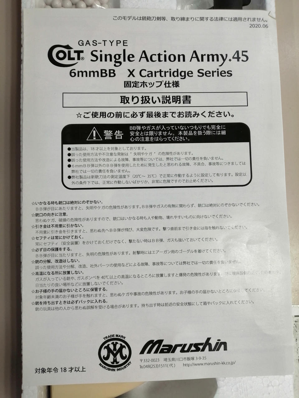 本体、薬莢×6、BB弾、箱、説明書 |