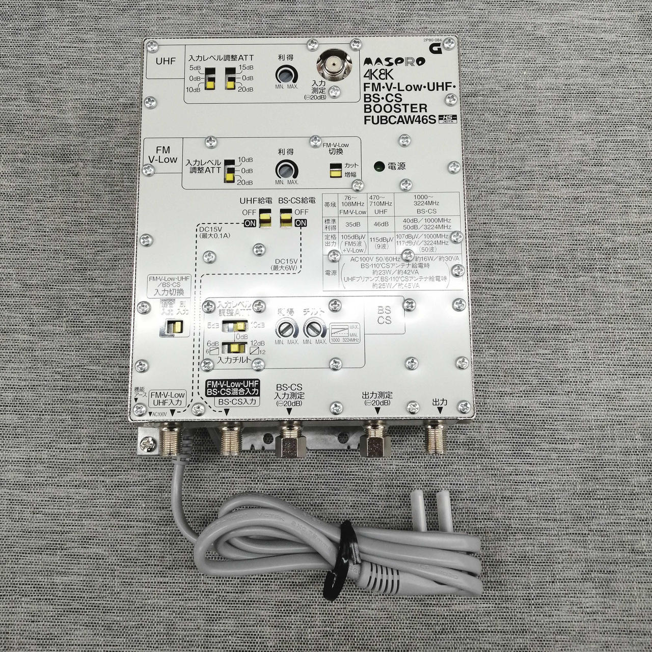 FM・V-LOWと地デジ、衛星放送の電波を増幅する共同受信用ブースター |